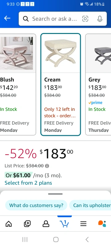 Set of 2 Upholstered Stools