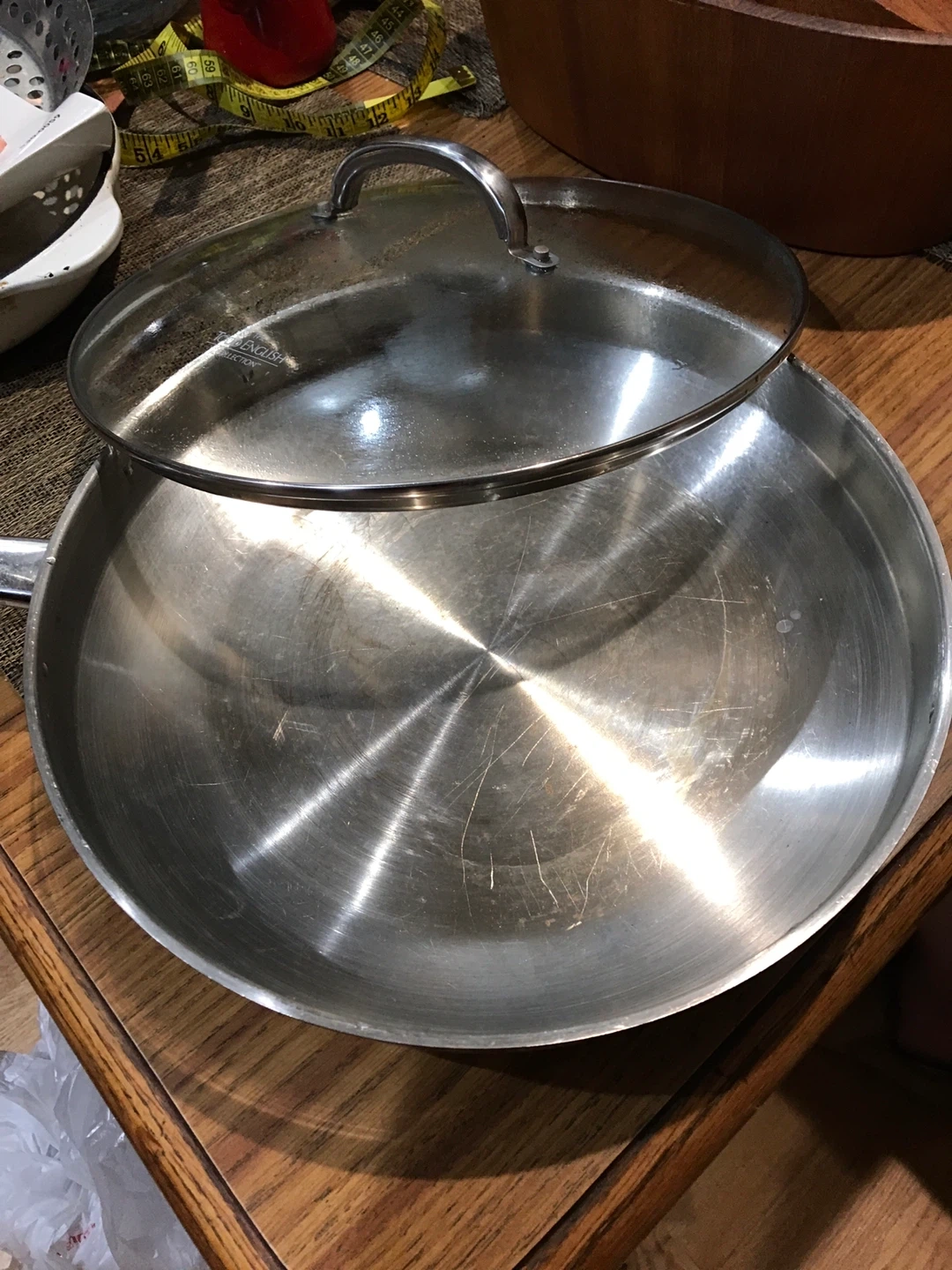 Selling a Todd English Collection frying pan with a lid. It's in used condition but still has plenty of life left! The pan is made of stainless steel and has a nice, sturdy handle. The lid is glass, so you can easily see what you're cooking. Great for everyday cooking!