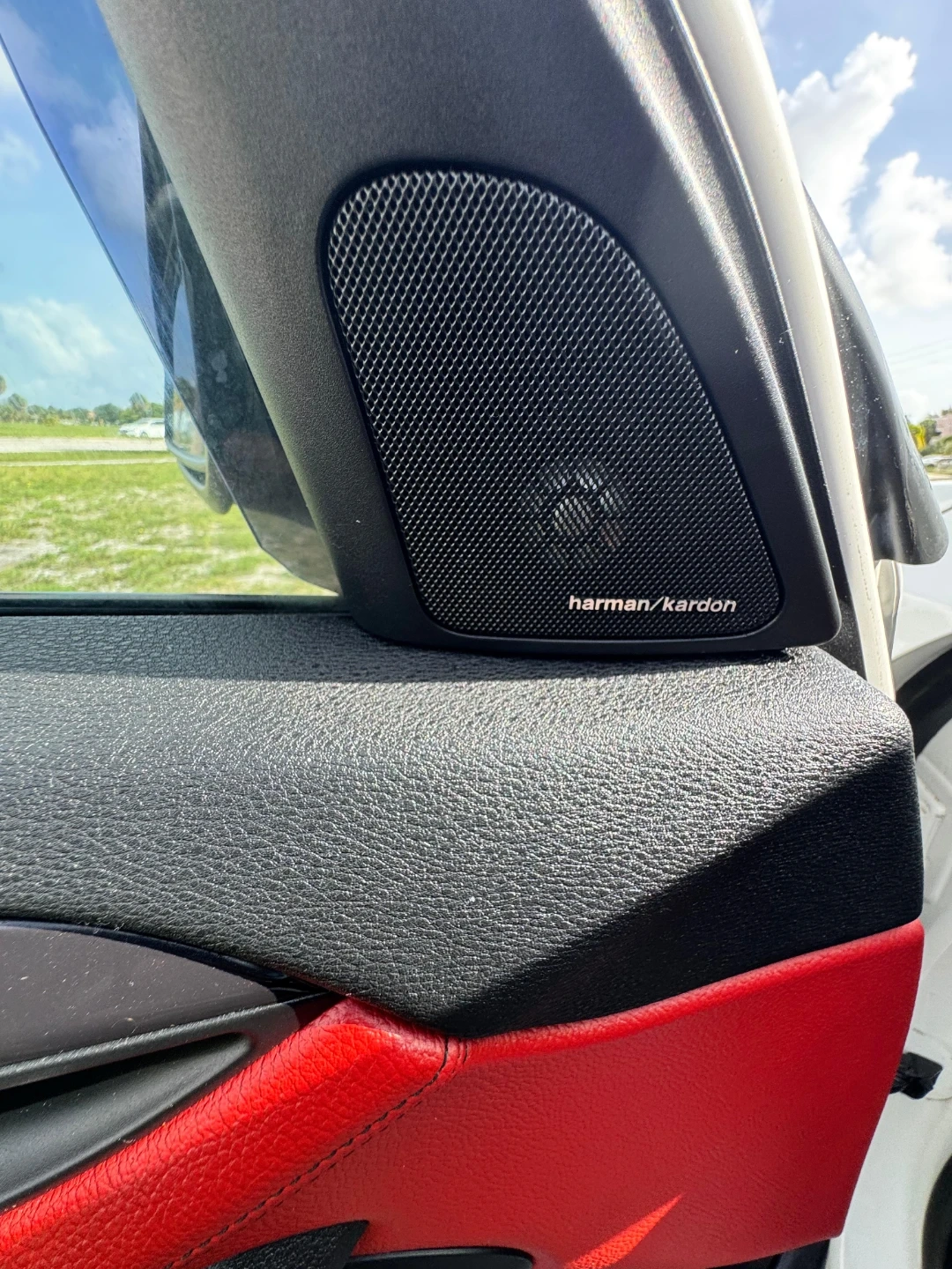 65Selling a white BMW X1 SUV 2014 It has a striking red interior. The vehicle is equipped with a Harman Kardon sound system.titulo en mano millage 170xxx