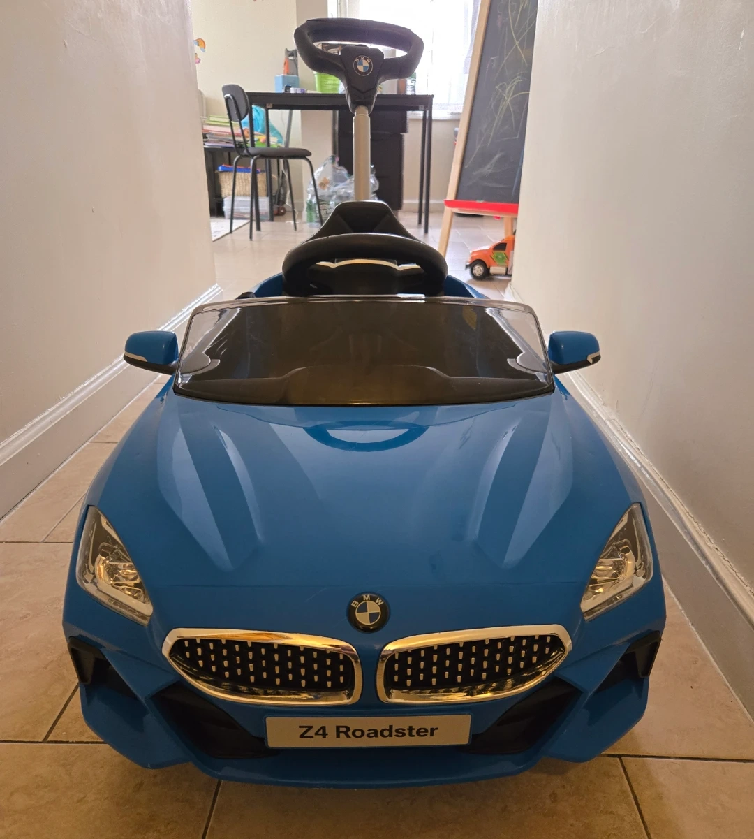 10Selling a BMW Z4 Roadster ride-on push car for toddlers! It's in great shape and ready for a new little driver. It has a seatbelt and sliding foot-rest.