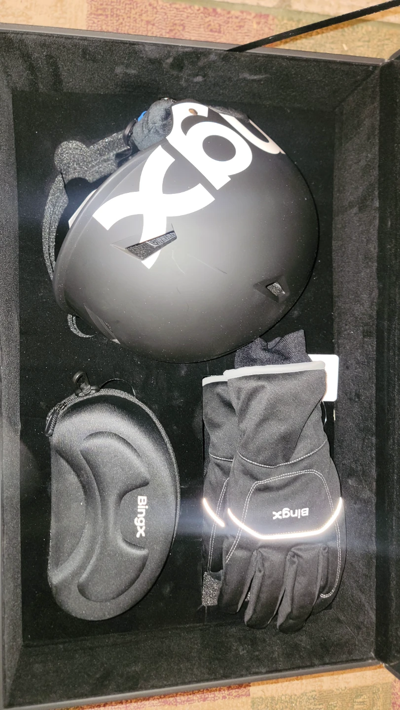 Selling a Bingx ski and snowboard set! This set includes a helmet, goggles, and gloves. Everything is in great condition and comes in the original box