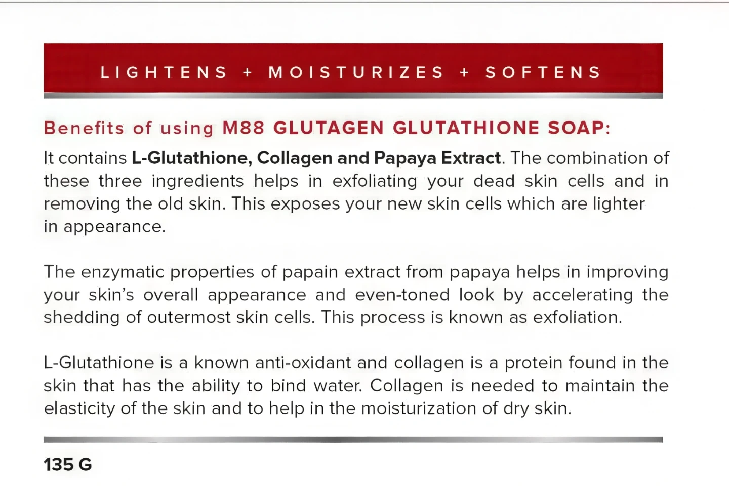 Deeply Cleanses: M88 Glutagen Soap washes away impurities, leaving your skin feeling refreshed and renewed.