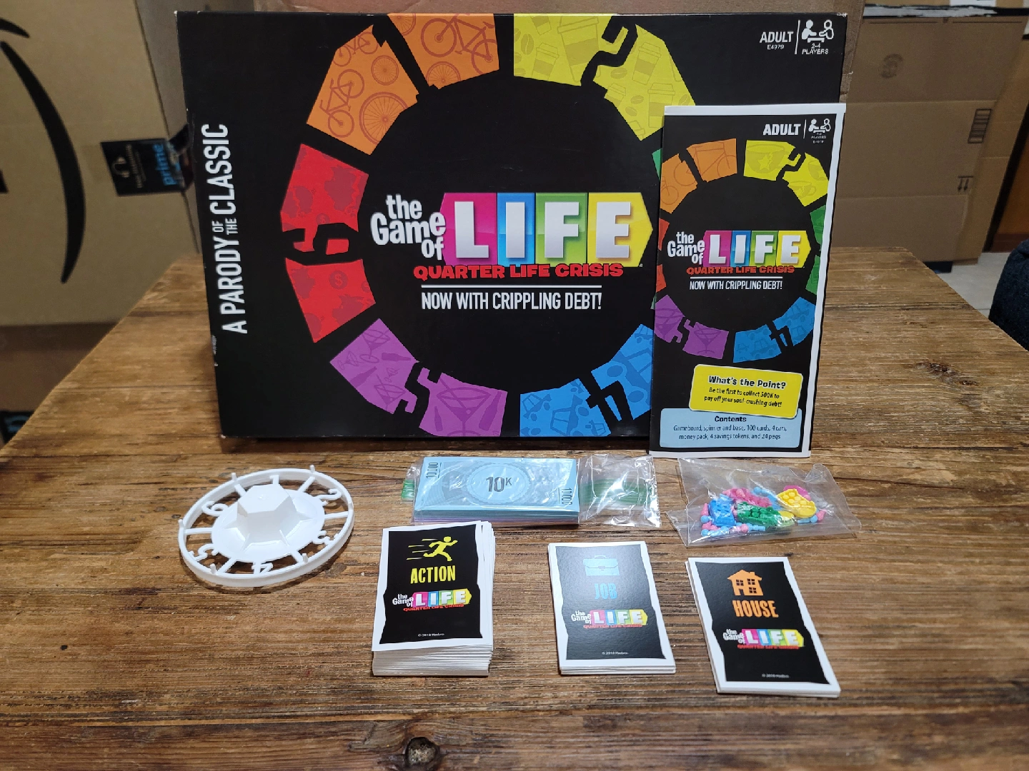 Selling a gently used copy of The Game of LIFE: Quarter Life Crisis. This is a fun, adult-themed parody of the classic board game, perfect for game night! The game is in great shape, with all pieces, cards, and the board included. The theme is a hilarious take on the struggles of modern adulthood, featuring concepts like crippling debt and rent payments. It's a complete set and ready for a new home. Feel free to message me with any questions! Accept Cash Only Payments.