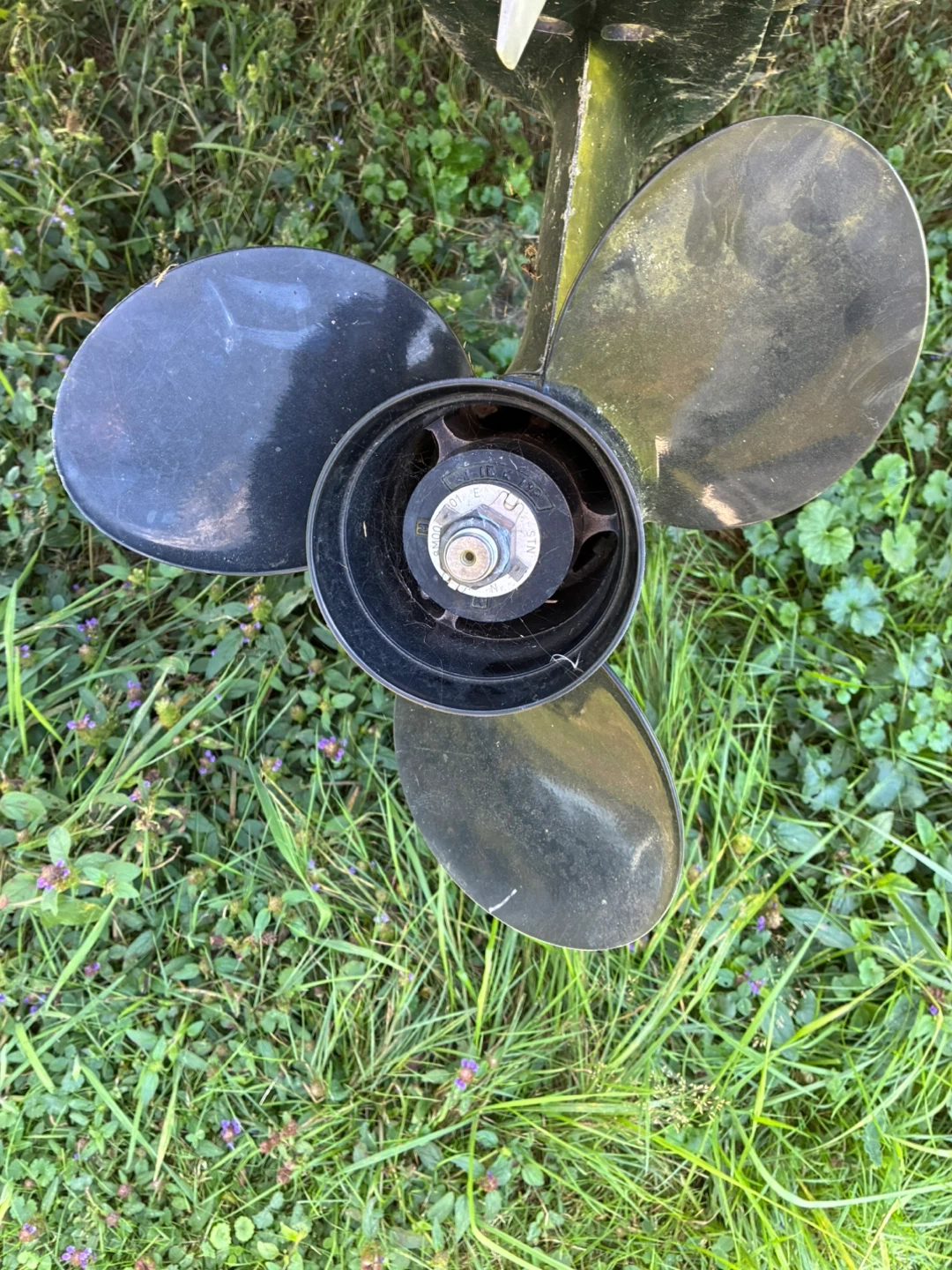 Selling a used boat propeller. It shows some signs of wear but is still functional. Please see photos for condition.