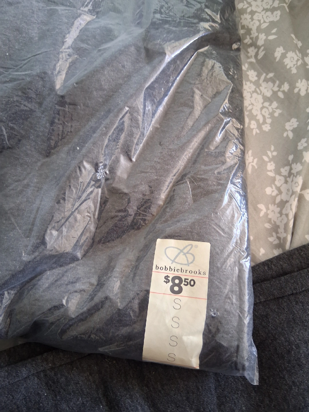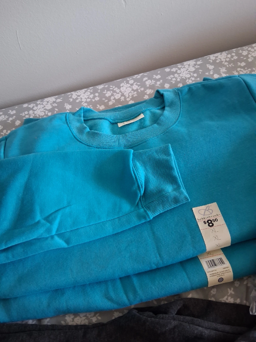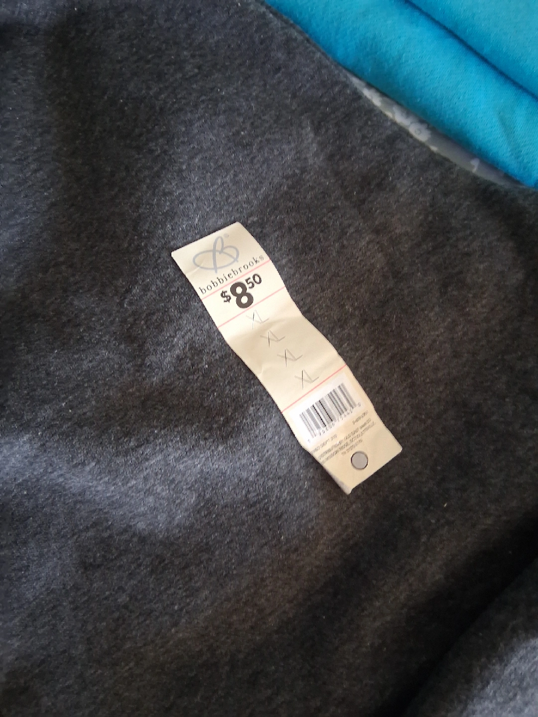 I have Bobbie Brooks sweatshirts for sale. One is a bright blue in size XL, and the other is a charcoal gray in size S. Both are new with tags and were originally $8.50 each