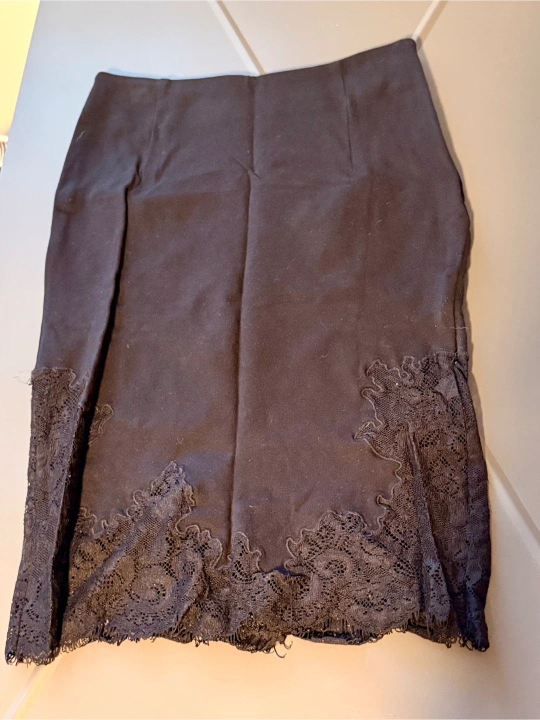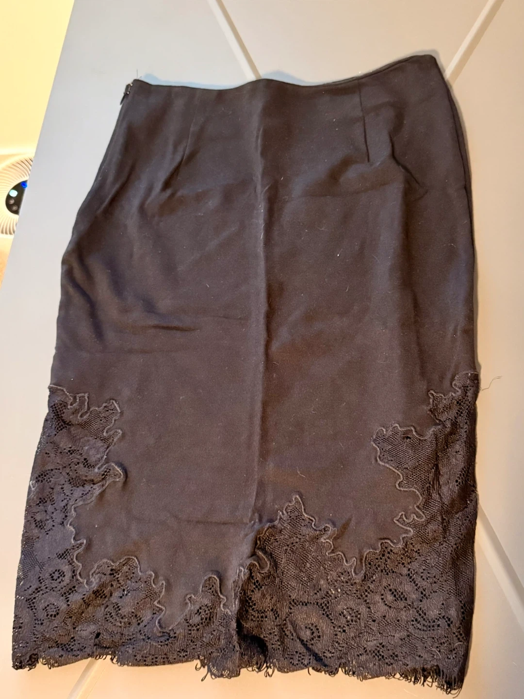 65Selling a cute black skirt from Body by Victoria! It's size 0 and features a pretty lace detail at the bottom. The shell is made of 72% viscose, 23% nylon, and 5% elastane, while the combo is 100% nylon Smoke free pet friendly home