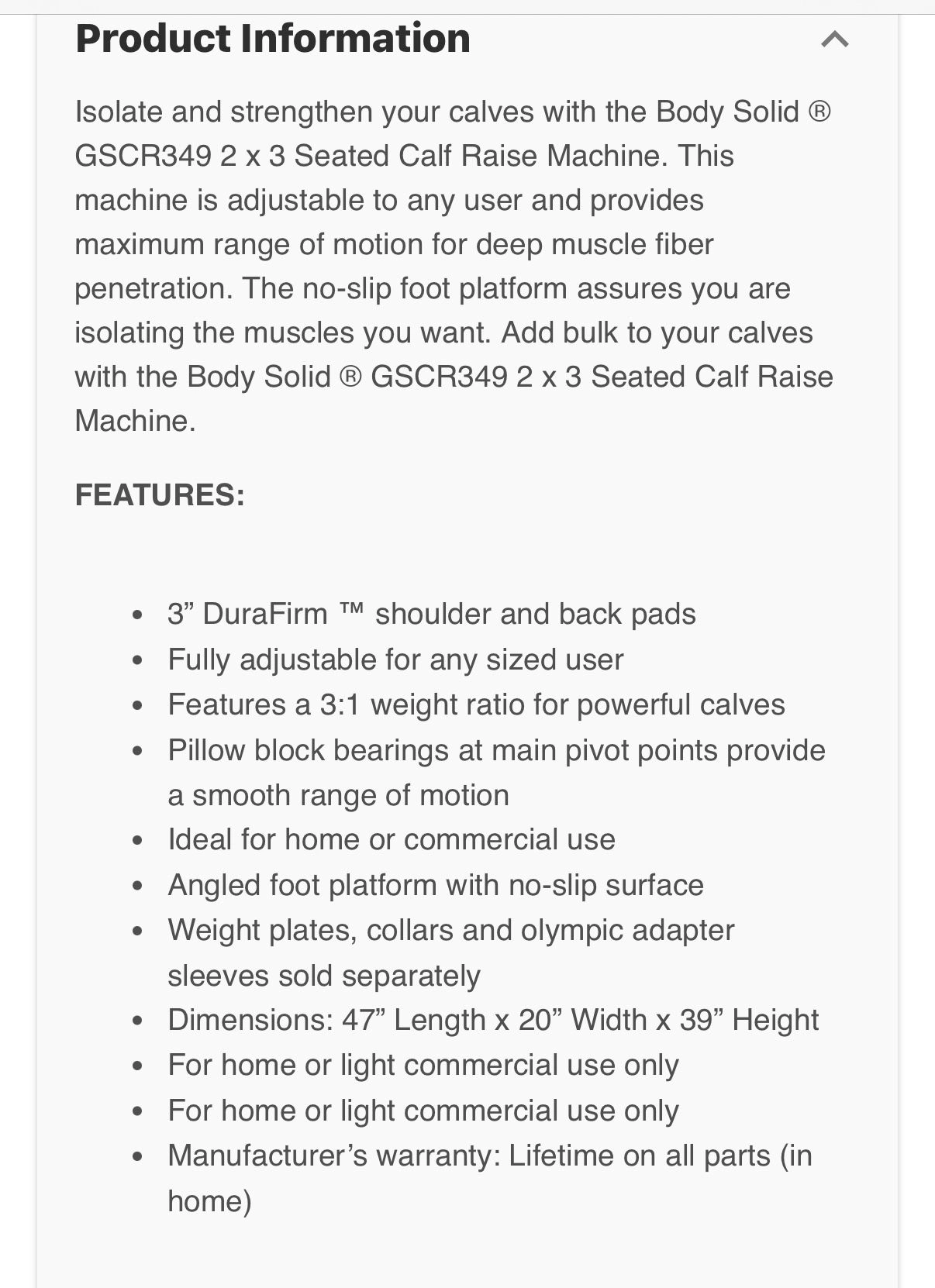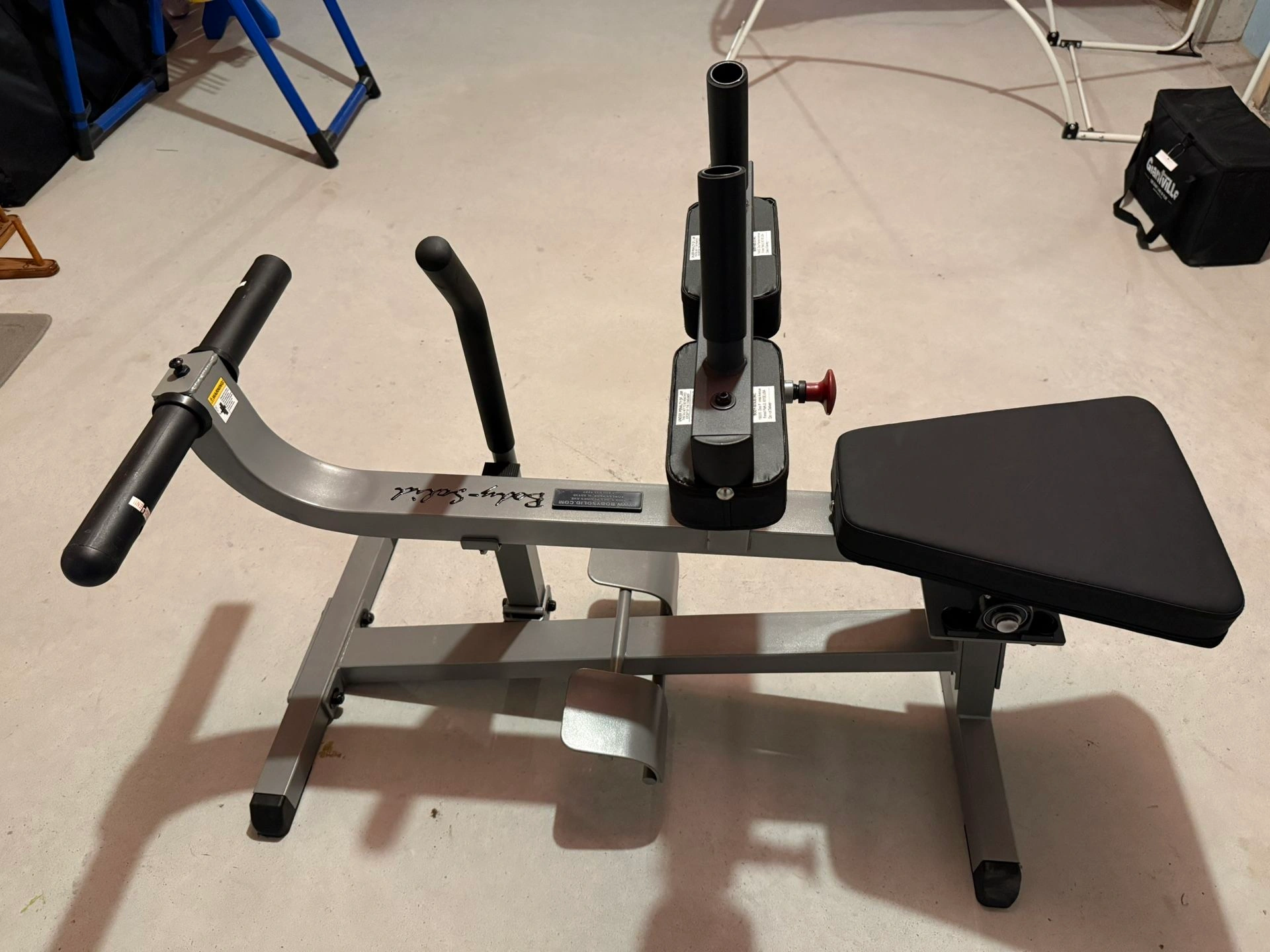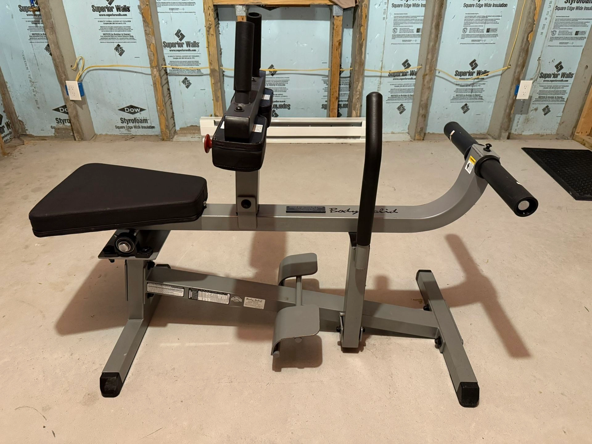 15Built like a TANK. Commercial quality, but still has a compact enough footprint to be perfect for a home gym as well. Body Solid seated calf raise machine in beautiful condition. Fully adjustable thigh padding. Can handle a lot of weight. Operates smoothly. Stations: Calf Raise Brand: Body Solid