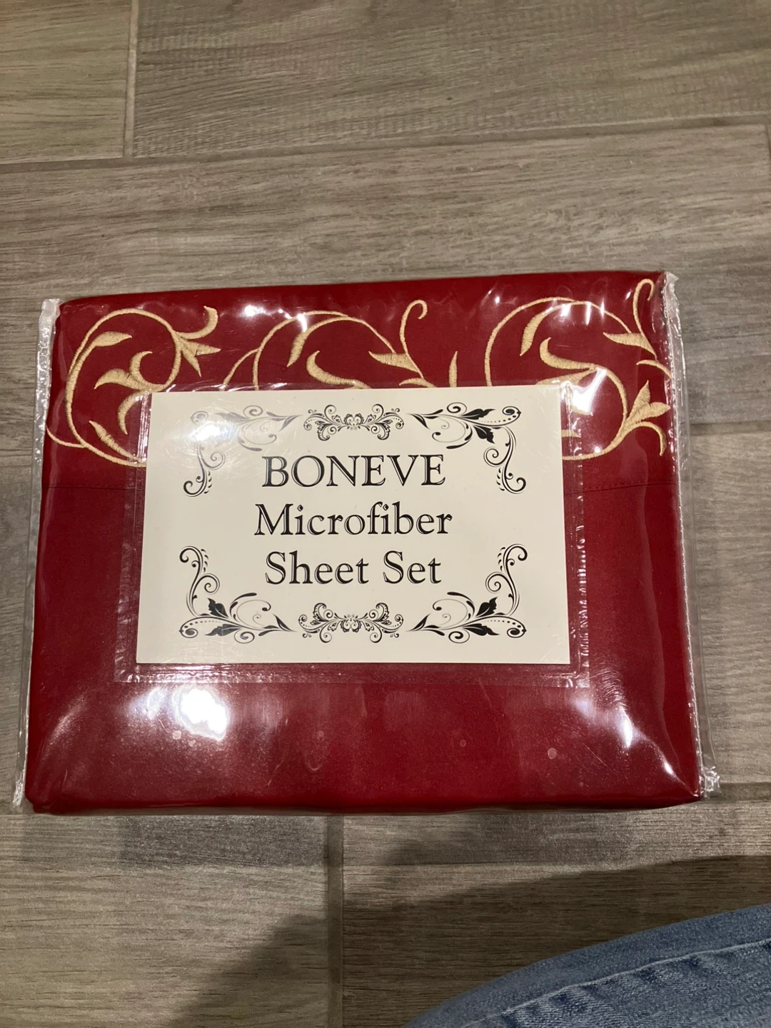 I have a new Boneve Microfiber Full size bed Sheet Set for sale! This set includes: 1 flat sheet (66" x 96"), 1 fitted sheet (39" x 75" + 14"), and 1 standard pillowcase (21" x 30")