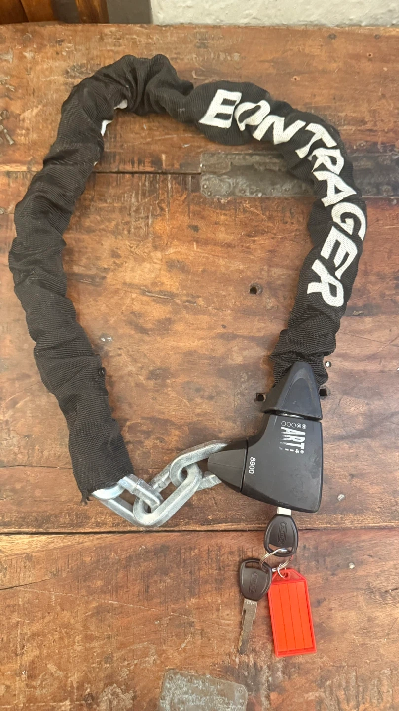 Used condition but works great. 85cm long, made by Abus. Includes 2 keys.