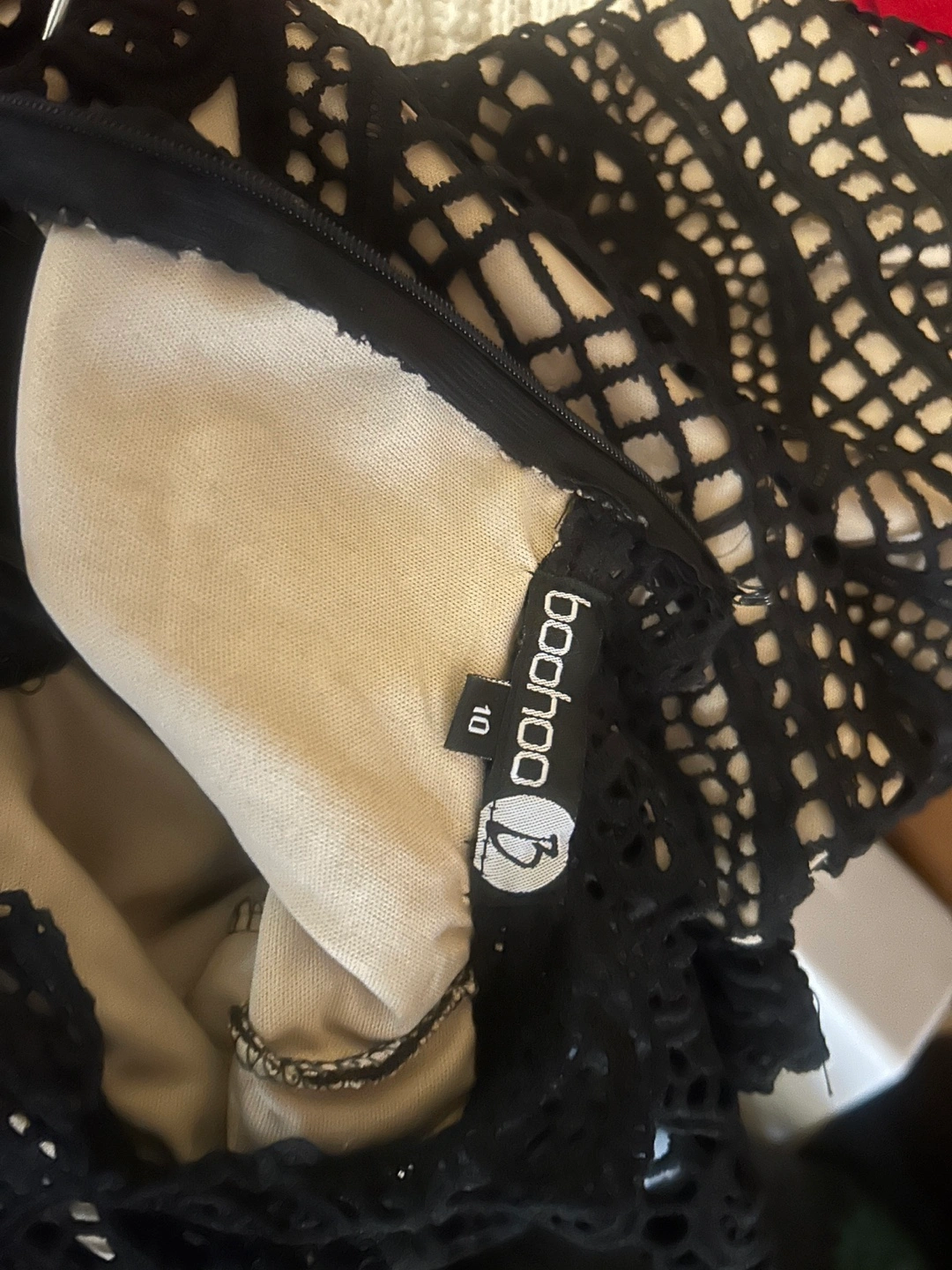 10Selling a cute black lace dress from Boohoo! It's a size 10 and in great condition. Perfect for a night out or a special occasion!
