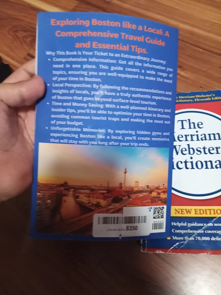 60MUST SALE IN 3-4 WEEKS Great mix of reference and travel reading! Includes: Merriam-Webster Dictionary (used, minor wear, pages intact, Some Cover Damage) Boston Travel Guide by Matt Hood (minor wear, no damage) Payment: Cash or PayPal (if bringing cash pls bring exact change) Pickup only — no shipping or returns Perfect for students, readers, or travelers planning a Boston trip Only for pickup