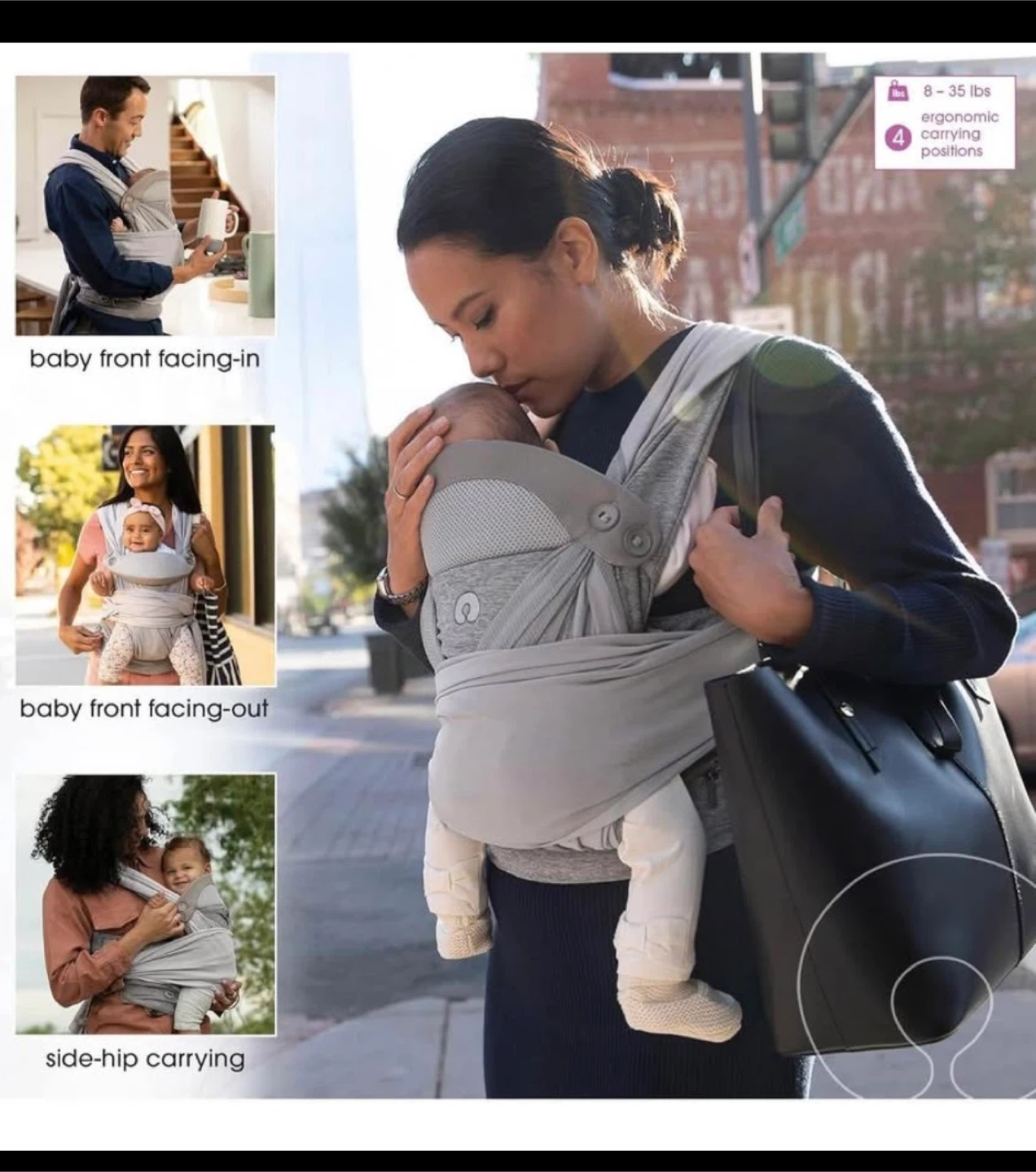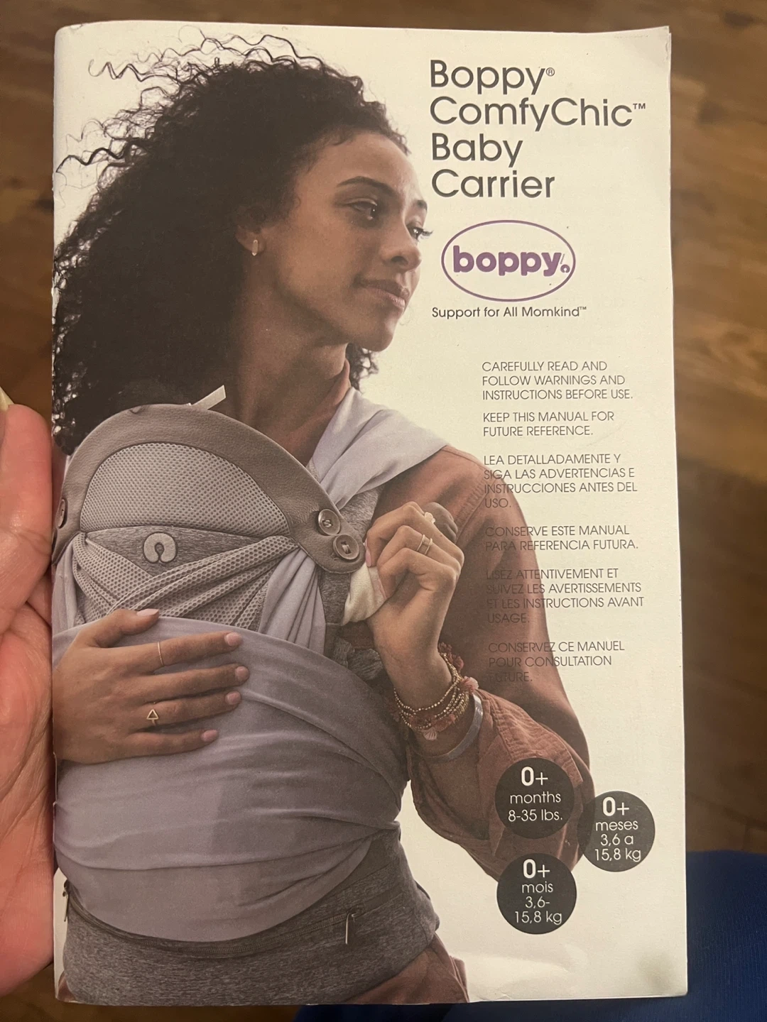 Boppy ComfyChic baby carrier! It's in great condition and ready for a new home. This carrier is designed to support all momkind and can be used for babies 0+ months, weighing between 8-35 lbs. It allows for ergonomic carrying positions.