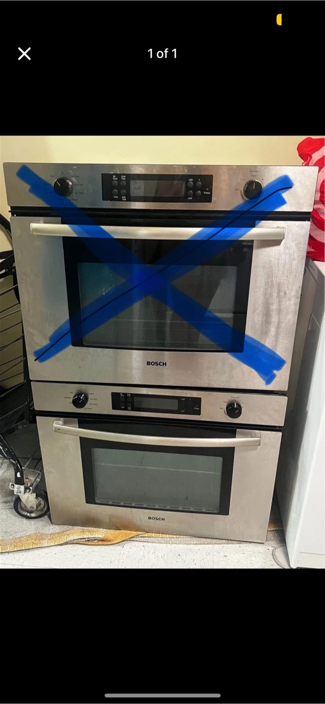 Selling a Bosch double oven. It's in used condition, but still works great! Perfect for anyone who loves to cook or bake