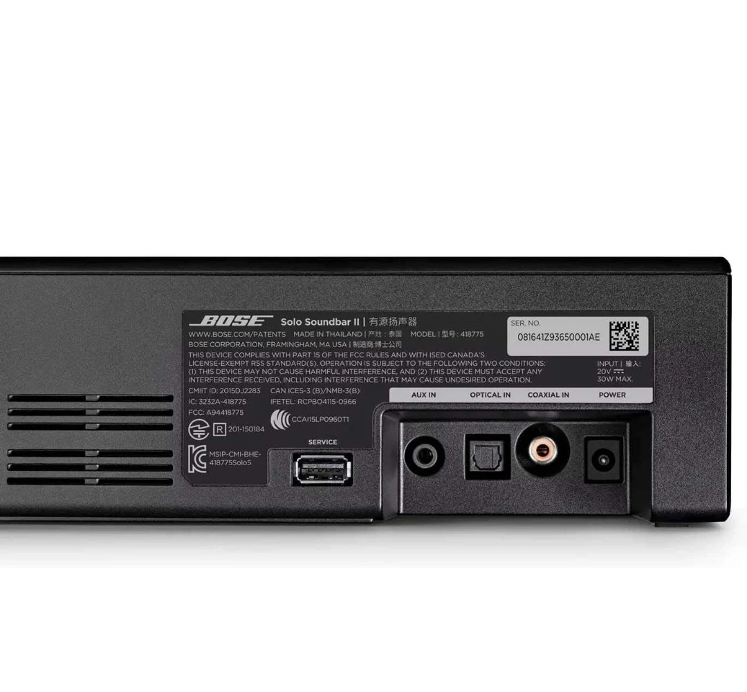 65BOSE Solo Series II 3-Inch Soundbar with Two Angled Full-Range Drivers, Built-In Dolby, and Front LED Lights (Black) 21.6" Soundbar Bluetooth Enabled for Wireless Streaming Dialogue Mode for Clearer Voices Built-in Dolby Decoding Includes Remote, Wall Mount, and Optical Cable NEW With WARRANTY EASY FINANCING AVAILABLE