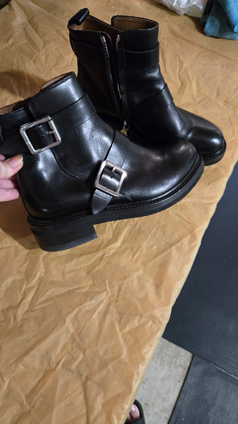These black leather ankle boots feature a stylish buckle design and a convenient zipper closure. They're in good condition and ready for a new home!