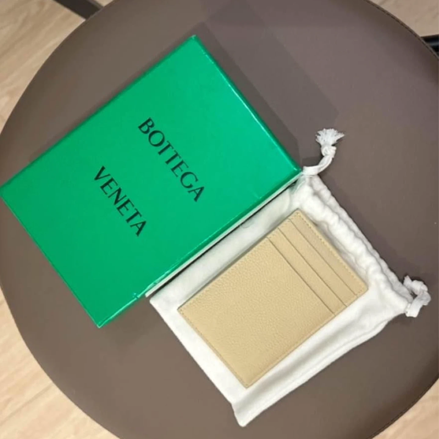 Selling a Bottega Veneta Cassette card case in a beautiful beige color. It's new and comes with the original box. This stylish card case is perfect for carrying your essential cards in a compact and elegant way