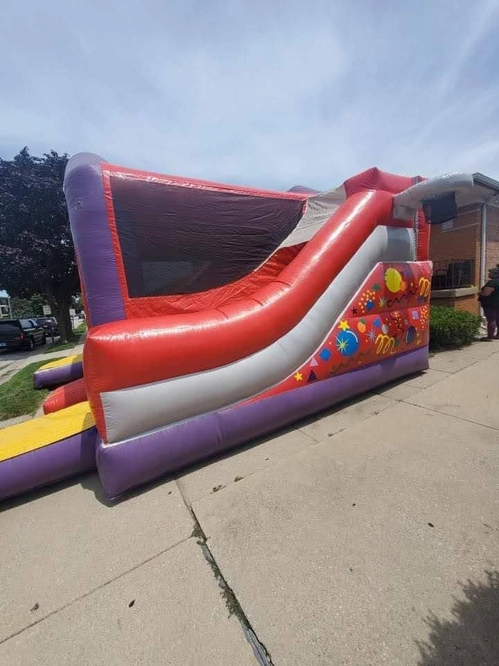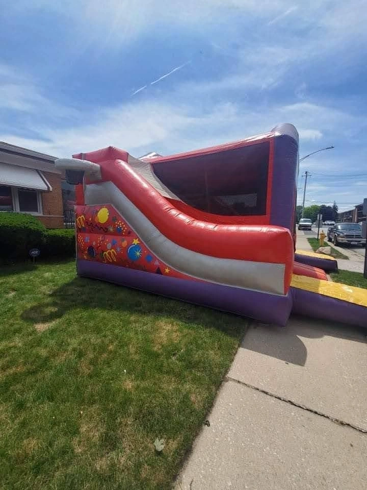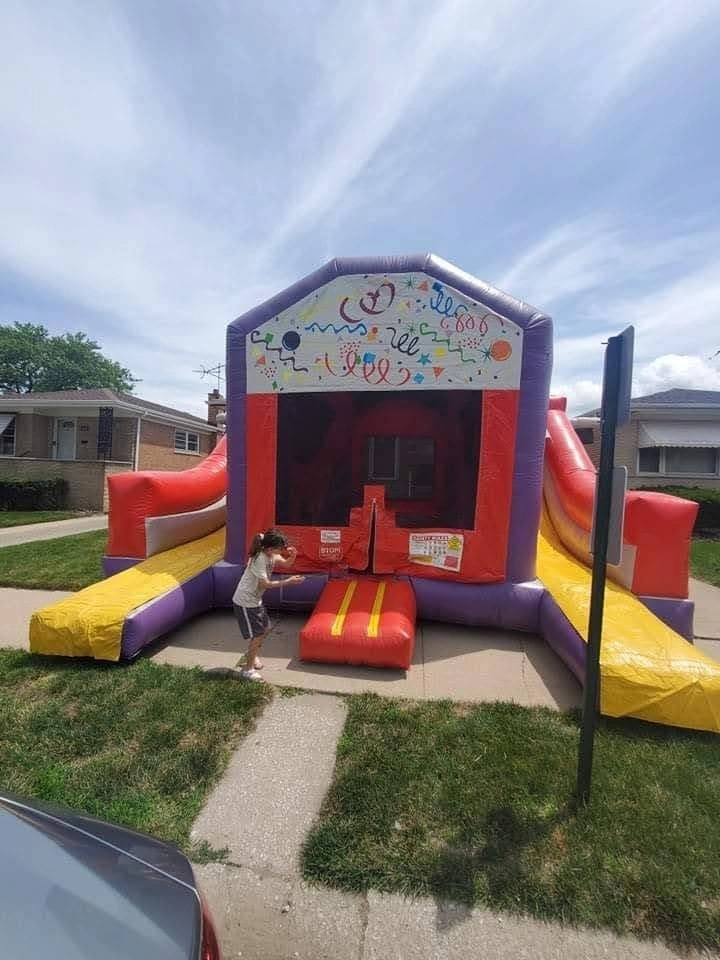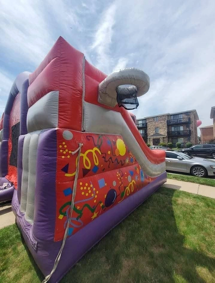 Bounce house with 2 slides and an inflatable basketball net on the side. In good condition. Garage stored. Contact me for further information. Serious inquiries only.