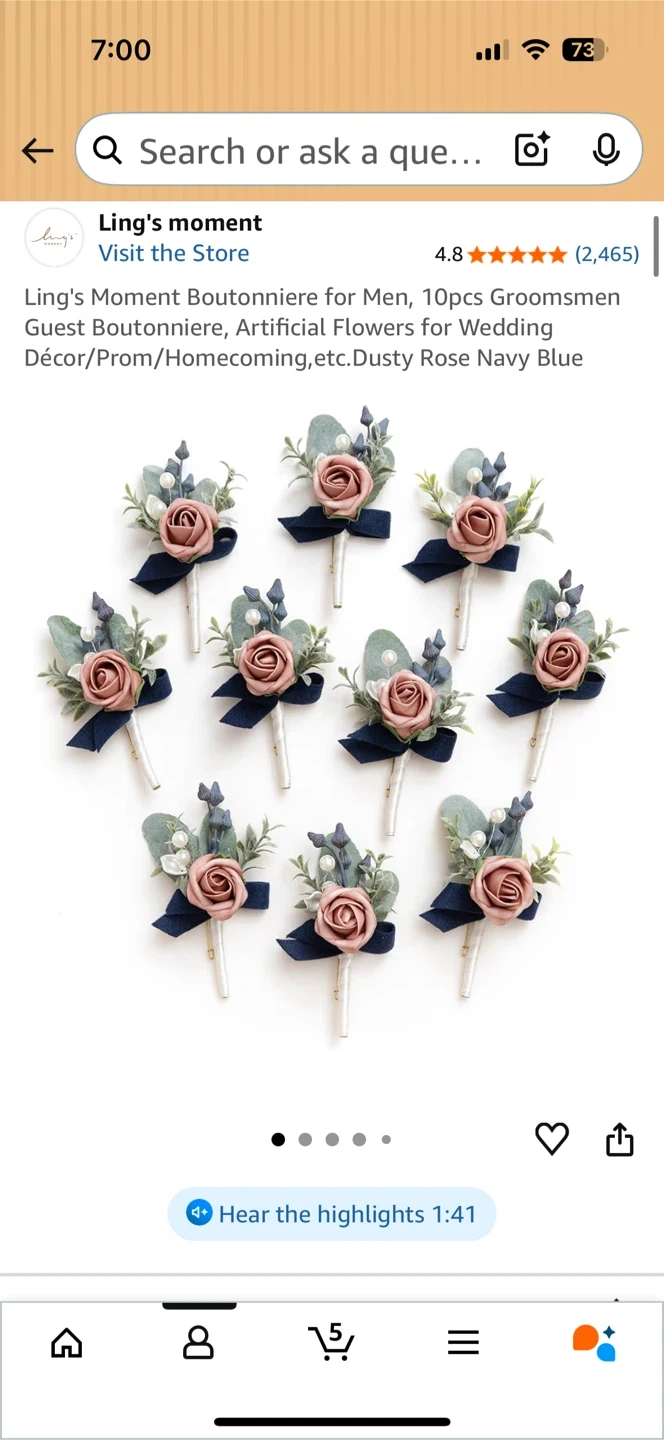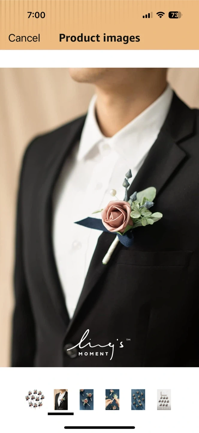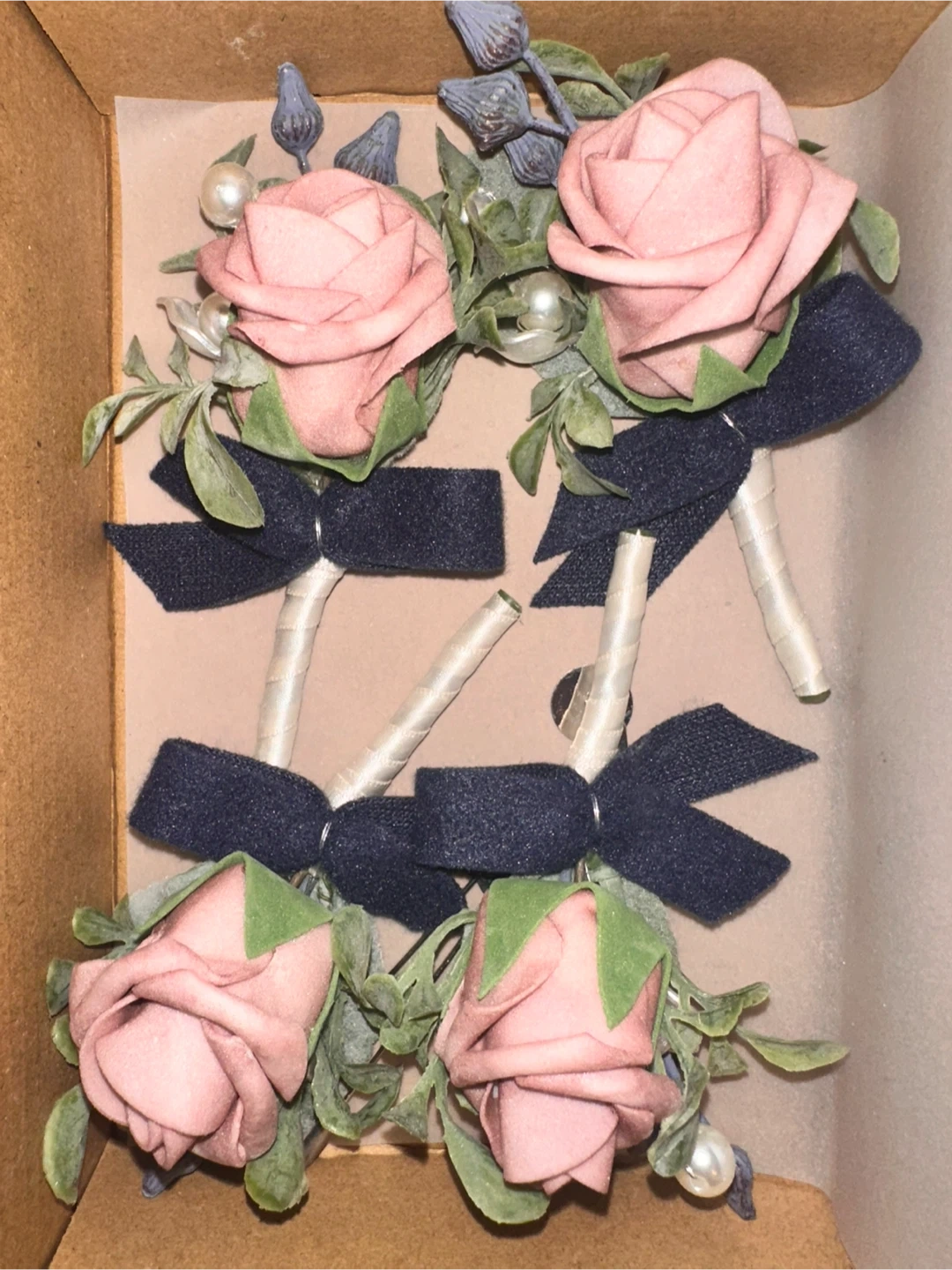 20I'm selling a set of 4 Ling's Moment boutonnieres in dusty rose and navy blue. They are artificial flowers perfect for a wedding or prom. They add a nice touch to any suit or jacket. Get these boutonnieres today!