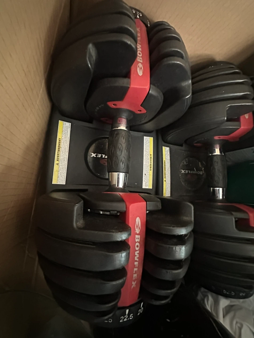 Selling a pair of Bowflex adjustable dumbbells! They're in good condition and ready for a new home gym. These are great for saving space and getting a full workout