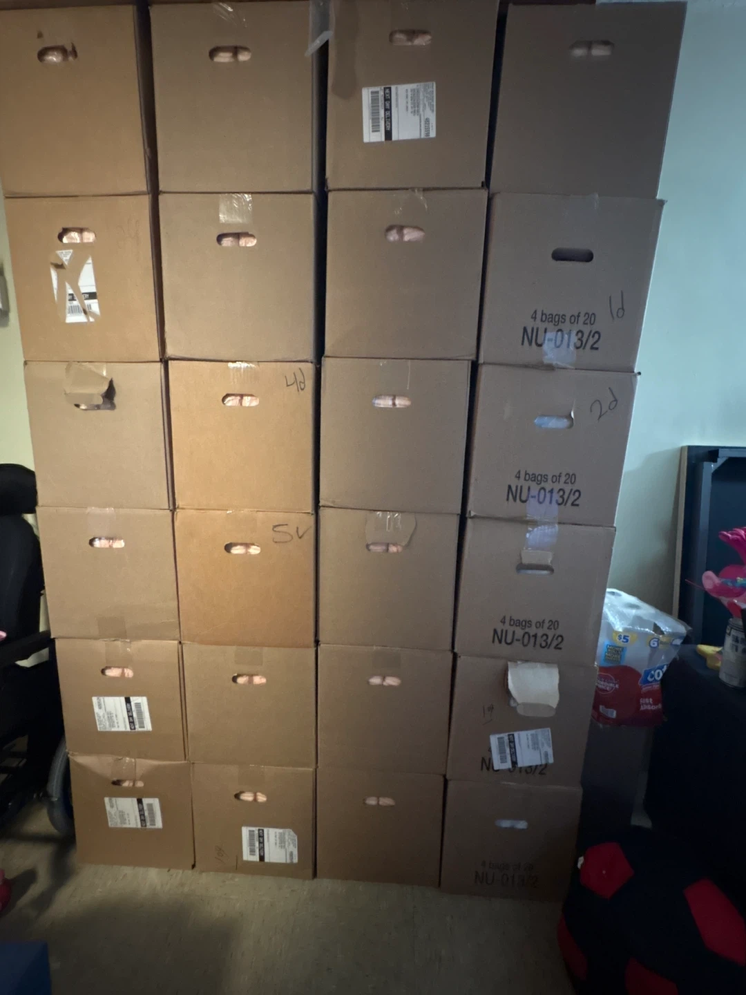 I have several boxes labeled NU-013/2. Each box contains 4 bags of 20 and 4 bags of 30 pad