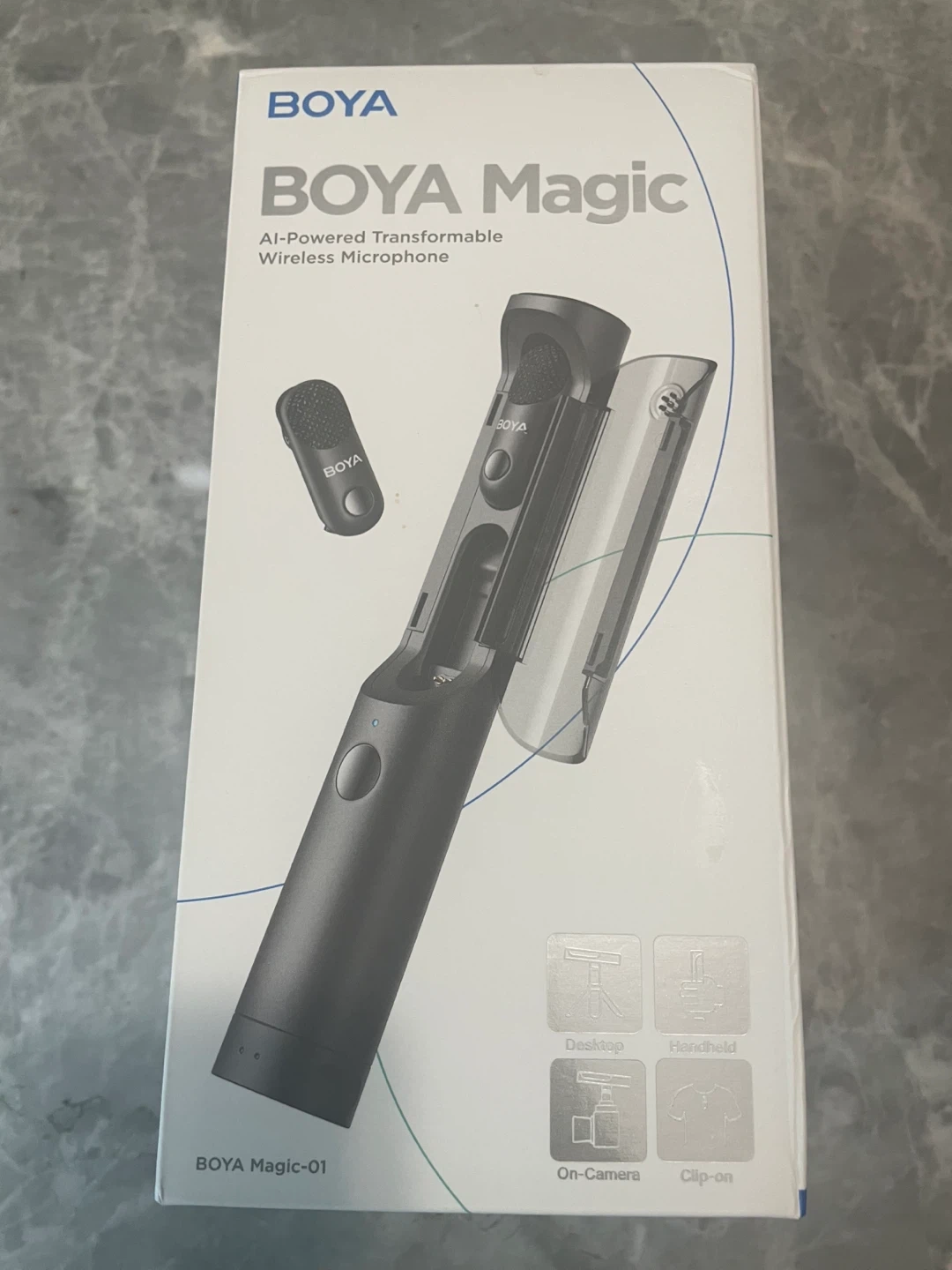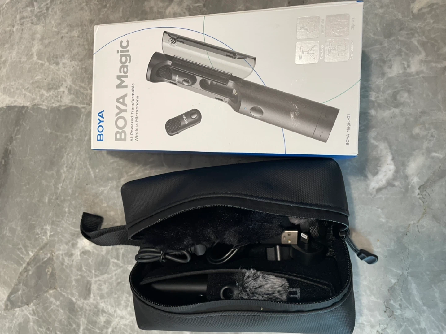 Selling a BOYA Magic AI-Powered Transformable Wireless Microphone. It comes with the box and all original components. Perfect for desktop, handheld, on-camera, and clip-on use!