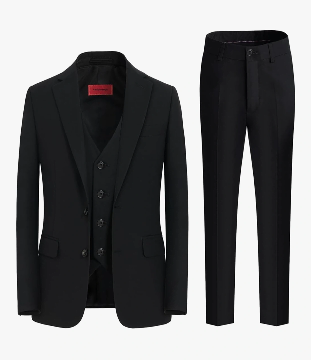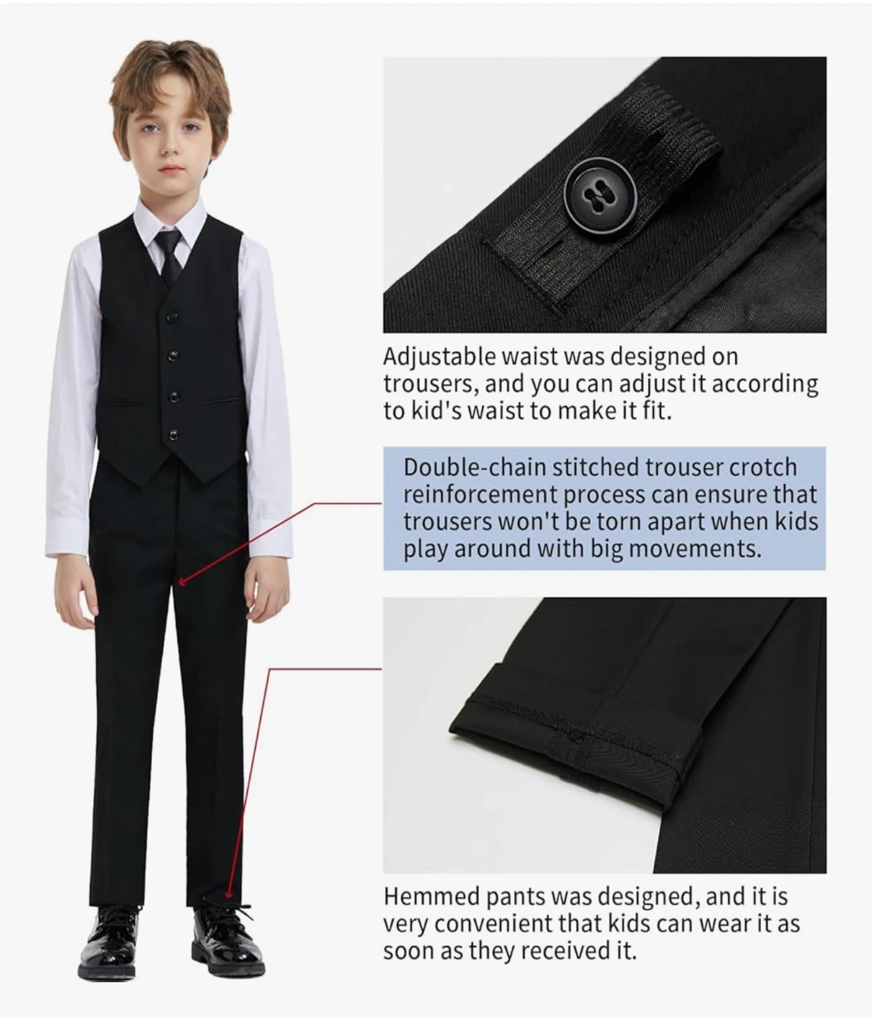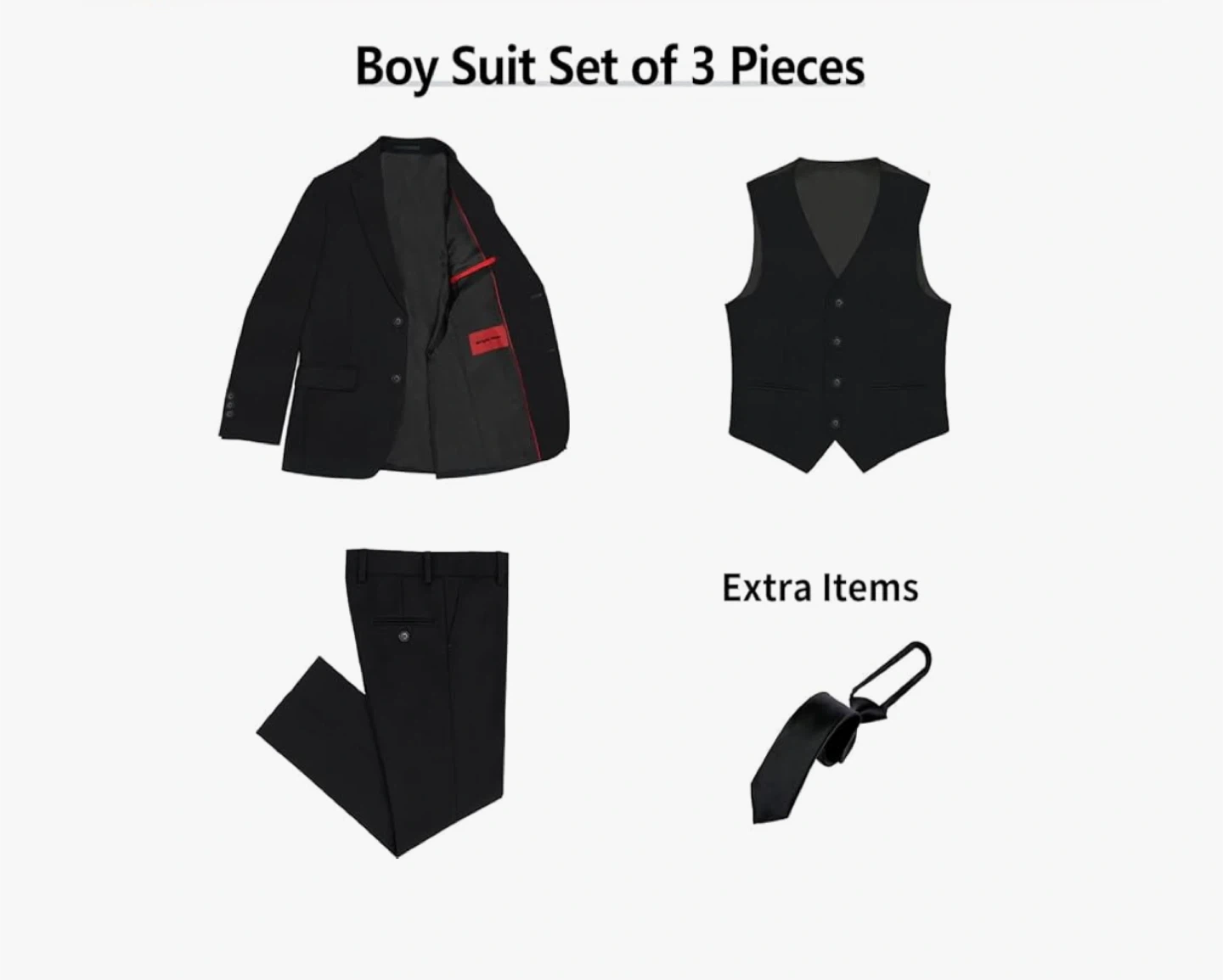 Boy's 4-Piece Black Suit (Jacket, Vest, Pants,Tie)