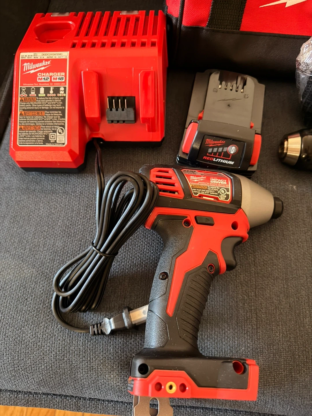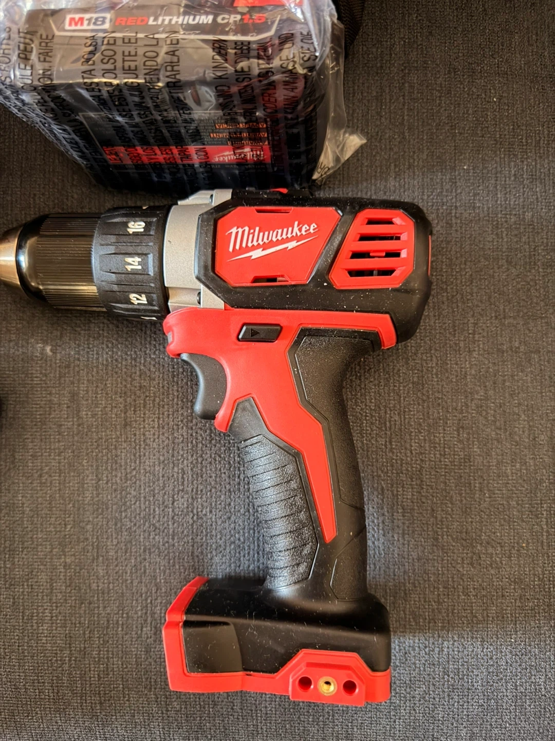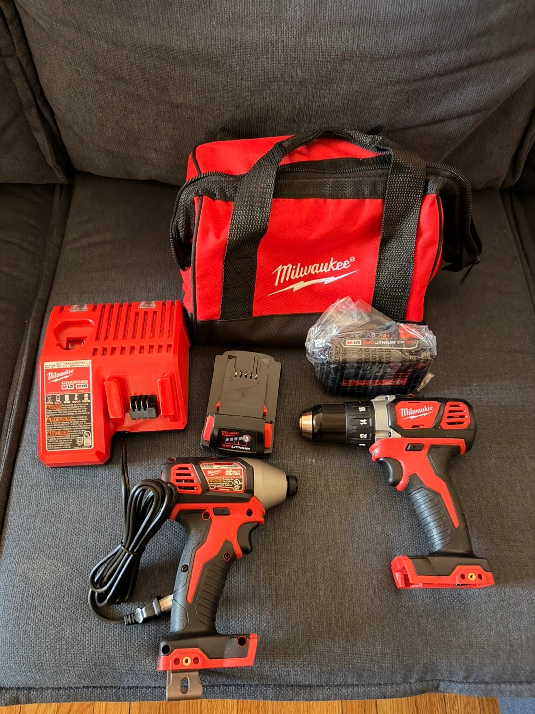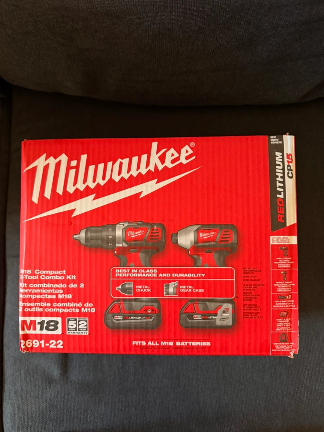 Includes M18 REDLITHIUM CP1.5 battery and M12/M18 charger. This 2-tool combo kit features a drill and an impact driver. Comes with a red Milwaukee carrying bag.