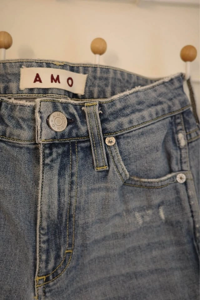 AMO Distressed Light Wash Denim Jeans