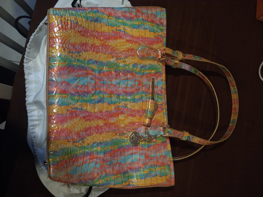 Selling a Brahmin Melbourne Asher tote bag! It features a colorful, textured design and comes with its original dust bag. Retails for $249. It's a stylish and eye-catching accessory!