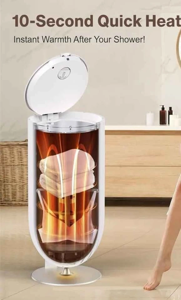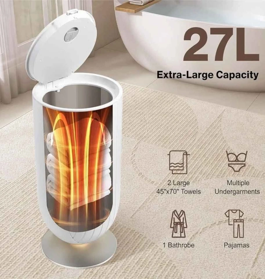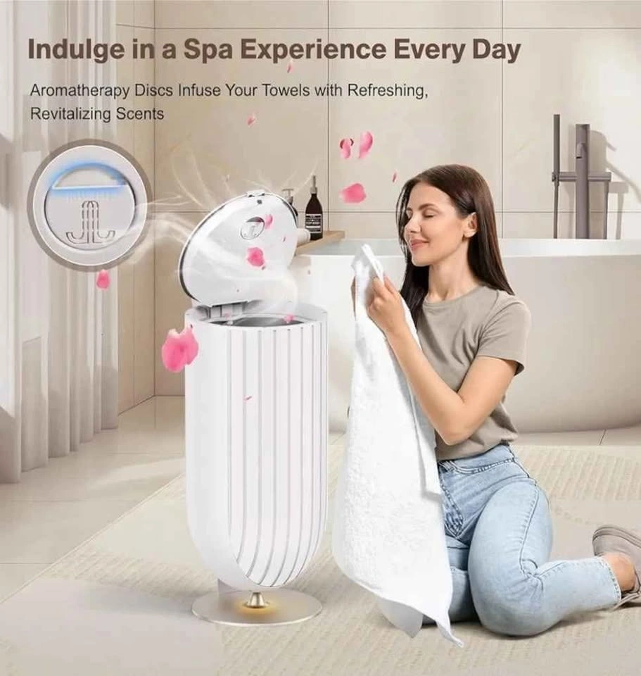 Brand new Towel Warmer. Perfect for home use and salon use. Rapid Heating Technology: With advanced high-pressure warm-air circulation technology, this towel warmer heats up to the ideal temperature within just 5 minutes—delivering warmth up to 30% faster than comparable models. Perfect for quick comfort on chilly days. Modern Minimalist Design: Features a sleek metal base, stainless-steel interior, with an intuitive LED display and automatic flip-top lid, making it a perfect fit in diverse spaces, such as homes, hotels, spas, and gyms. Smart Multi-Mode Adjustment: Adjust through four modes with temperatures ranging from 170°F to 230°F and timers from 15 to 90 minutes. The drying mode (2–10 hours) and negative ion ventilation help keep items fresh, odor-free and static-free. 27L Spacious Interior: Fits two large bath towels (70 x 45 inches), or up to 8 medium-sized towels, paired with Rapid heating technology to ensure every family member warm comfort. Custom Fragrance and Night Light Function: Add fragrance to your towels and clothing using the rotating aroma disk. The night light feature allows for easy access in low-light conditions, enhancing convenience and comfort. Outstanding Safety Assurance: This towel warmer is ETL certified with multiple safety features, including automatic shut-off, intelligent temperature control, and overheating protection, ensuring safe operation. Note: the internal temperature is high during operation; Do not open the lid