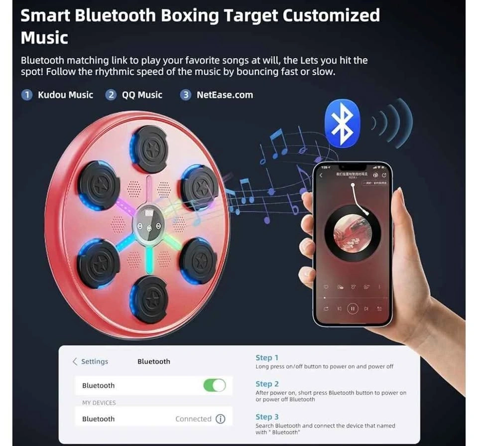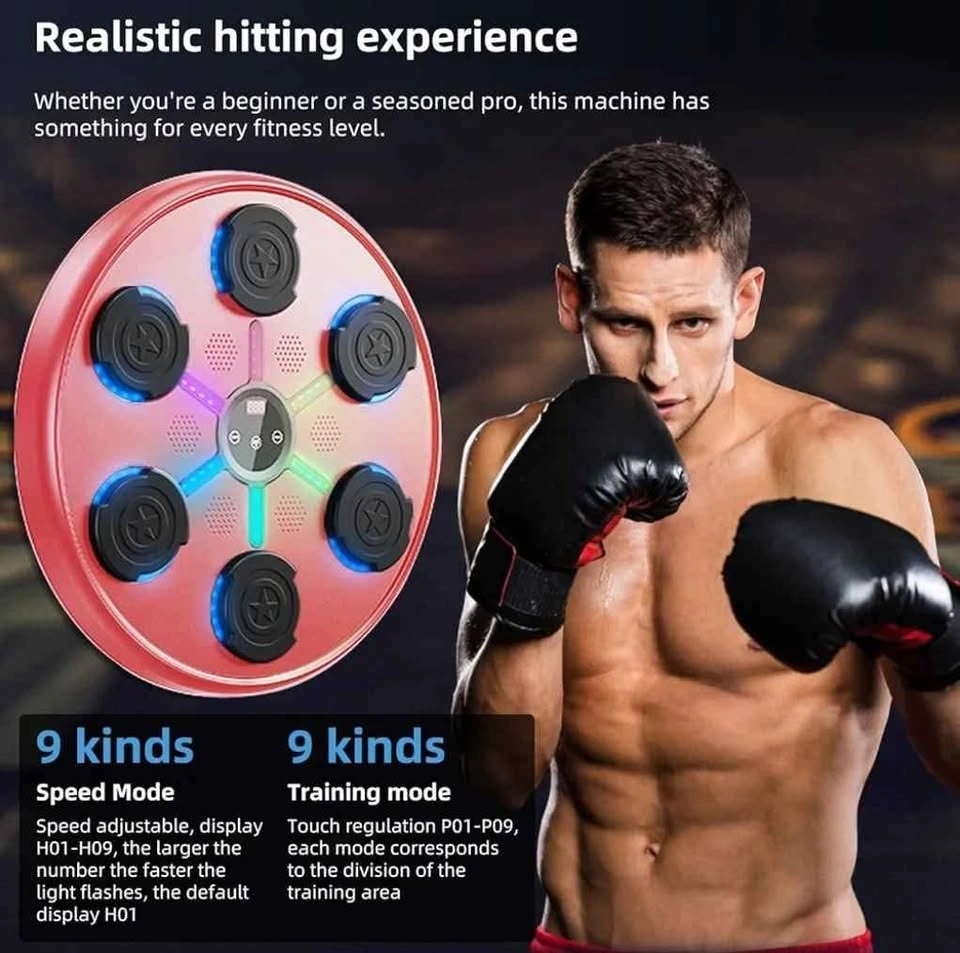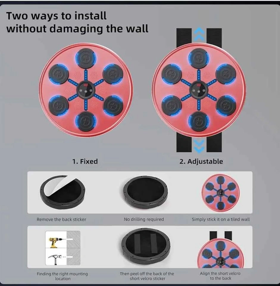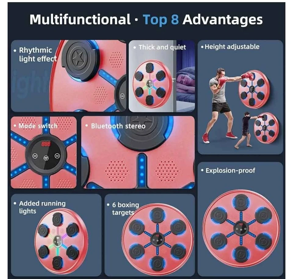 New Bluetooth Music Boxing Machine with Boxing Gloves. The impact surface is made of high-elastic foam material, which has strong rebound and shock-absorbing effects, and is equipped with a pair of boxing gloves to protect your hands. Other parts are made of durable PU material, which can withstand long-term use and high-intensity training whether it is home use or commercial gym. The music boxing machine has 9 modes and 9 speeds, which is a perfect choice for professionals and beginners. It can intelligently identify music and enhance the visual experience through LED light effects, providing an immersive experience. The boxing machine can improve your reaction speed and body coordination, achieve comprehensive muscle training and get entertainment enjoyment. This smart music boxing machine is equipped with upgraded speakers. When you hit the lit target, the device will emit music and light effects, and the LED display will show your hit count to stimulate your interest in exercise. The smart boxing music machine supports Bluetooth pairing, and you can choose your favorite songs during boxing training. Surround speakers and cool lights bring you the best audio-visual effects and the best exercise experience. The boxing music fitness machine comes with a pair of gloves to protect your hands. If you have your own boxing gloves, you can also use them for training. OORUN boxing music machine is wall-mounted, saving space and installation time. Use double-sided tape and Velcro to fix the Bluetooth boxing machine to the wall, and you can own a home boxing machine without drilling holes in the wall. You don't need to go to the gym to exercise at home, saving your time and money. Item Package Dimensions L x W x H 20 x 19.5 x 2.75 inches Package Weight 2.77 Kilograms Item Dimensions LxWxH 19.3 x 19.3 x 2.16 inches Item Weight 4.41 Pounds Brand Name ZWOTNDT Warranty Description 1 year Model Name Music Boxing Machine Color Red Material Plastic Suggested Users unisex-adult Number of Items 1 Manufacturer ZWOTNDT Part Number JH-QJ-01 Included Components Velcro, Charging cable, Instructions, A pair of professional gloves Size 19.3*19.3*2.16"