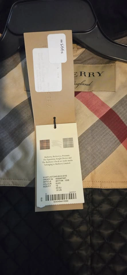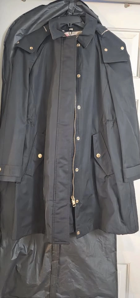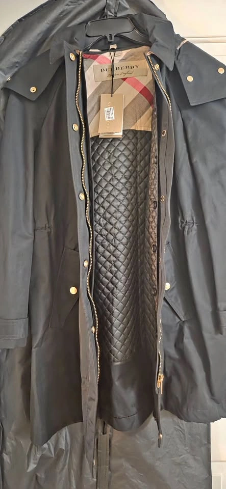 Brand new Burberry hooded parka (with tags) - never worn. Detachable liner EU size = 44 Comes with original Bloomingdale's garment bag. Retail value per tag info is $995. Smoke-free & pet-free home.