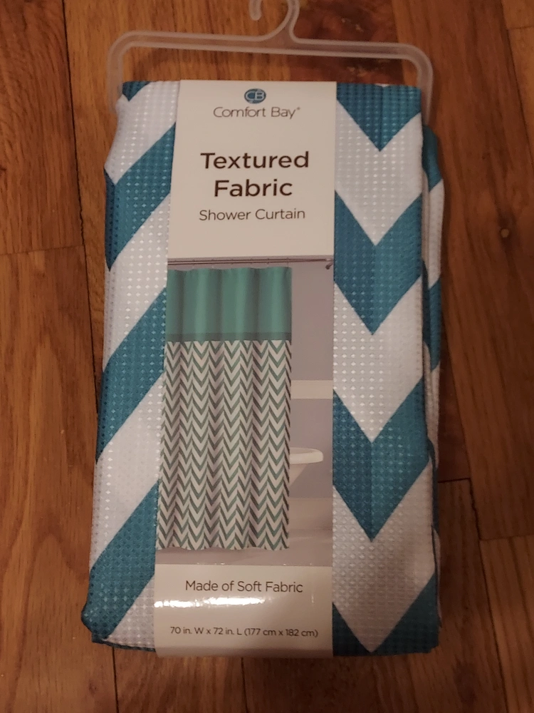 New Comfort Bay textured fabric shower curtain! It's made of soft fabric and measures 70 inches wide by 72 inches long (177 cm x 182 cm)