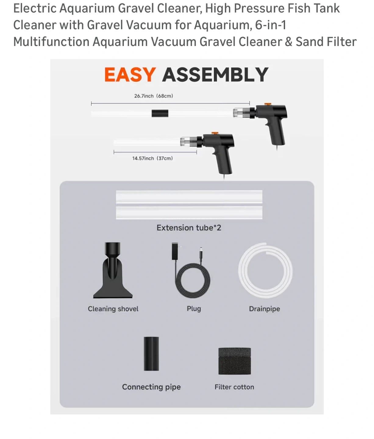 154Electric Aquarium Gravel Cleaner, High Pressure Fish Tank Cleaner with Gravel Vacuum for Aquarium, 6-in-1 Multifunction Aquarium Vacuum Gravel Cleaner & Sand Filter Brand new in box