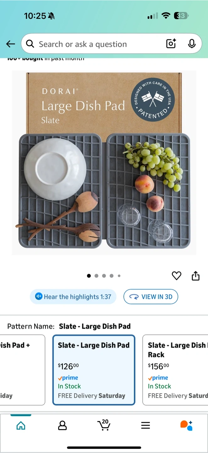39Selling a DORAI Large Dish Pad in Slate color. It's designed with care in the USA and even patented! This dish pad is perfect for keeping your countertops dry and organized. Originally bought for $126, and it comes with the original box that never been opened