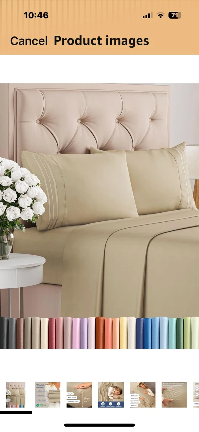 Get ready for timeless bedroom elegance with this set of expertly embroidered pillowcases! This set includes two pillowcases, one flat sheet, and one fitted sheet. They're stain-proof, fade-proof, won't wrinkle, and won't pill. The fitted sheet is designed for a snug fit that won't pop off, with all-around elastic and fits mattresses from 8" up to 16" I ordered wrong size, just missed the return time.