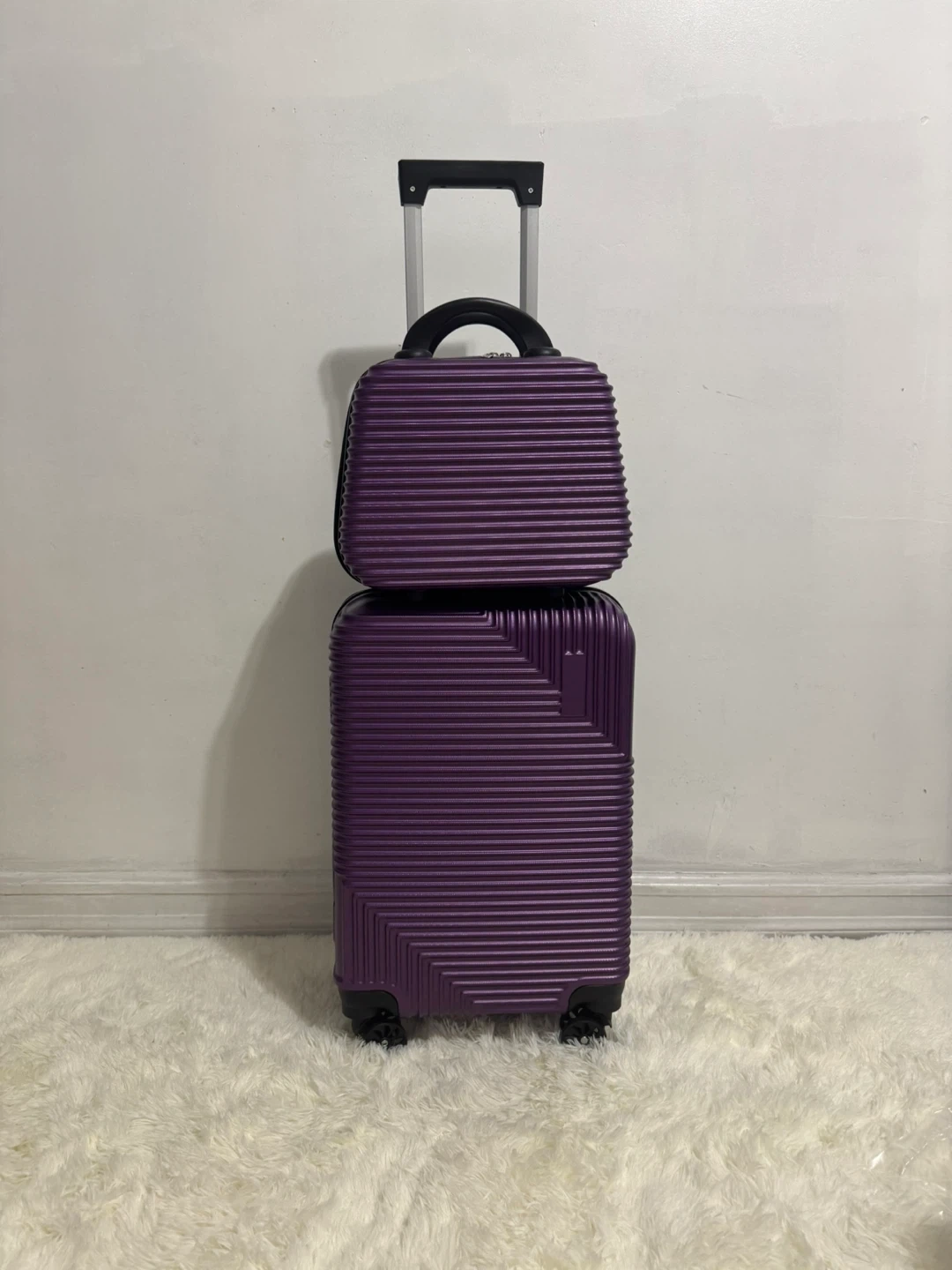 Selling a stylish purple luggage set that includes a carry-on suitcase and a matching vanity case. It's perfect for travel and easy to maneuver. The set is in great condition and ready for your next adventure
