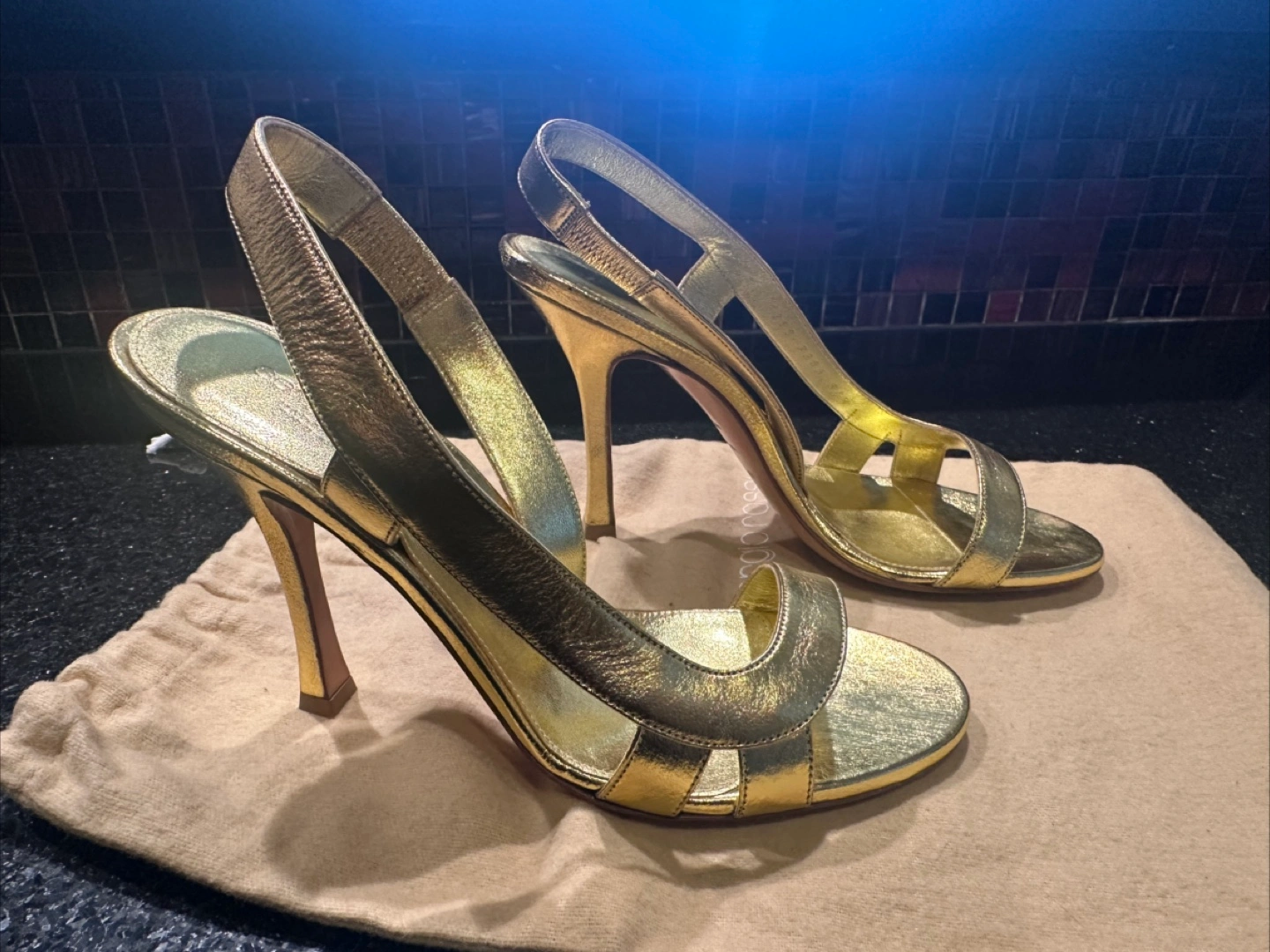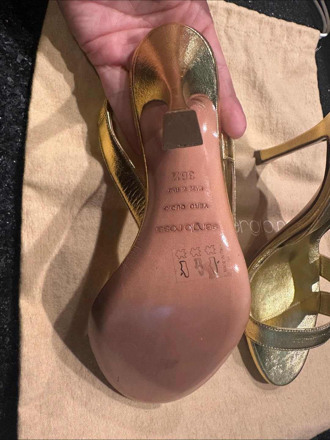 16Selling a pair of Sergio Rossi gold heels. They come with the original box and dust bag. Never worn and ready for a night out! Retail value $575