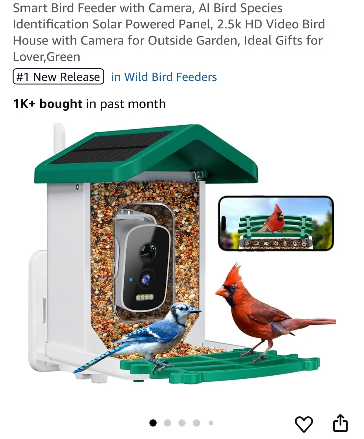 Smart Bird Feeder with Camera, AI Bird Species Identification Solar Powered Panel, 2.5k HD Video Bird House with Camera for Outside Garden, Ideal Gifts for Lover,Green Brand new in box