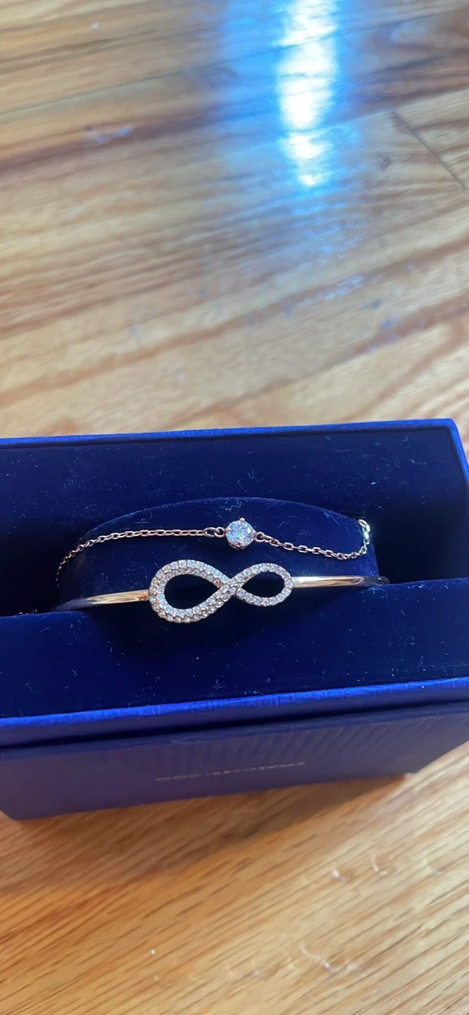 Selling a beautiful Swarovski gold infinity bracelet! It comes with the original box and is brand new and never worn.