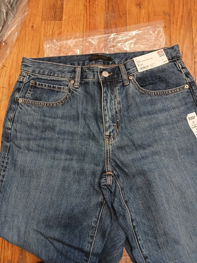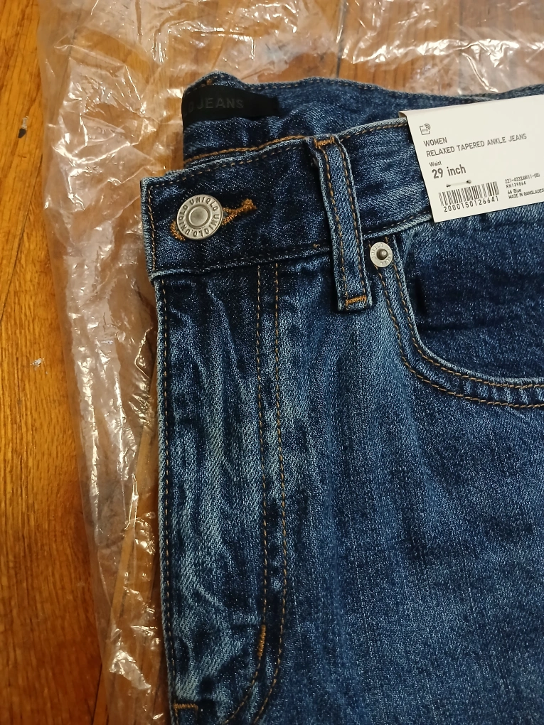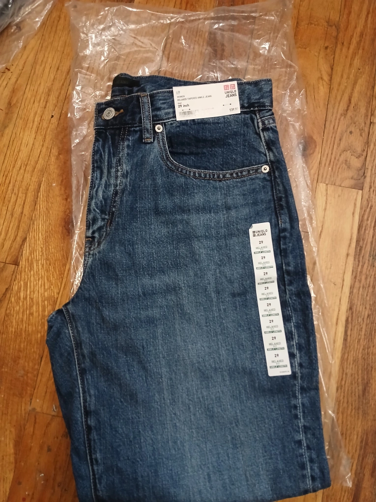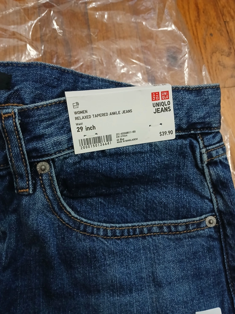 47I'm selling a pair of Uniqlo Women's Relaxed Tapered Ankle Jeans in a size 29 inch. These jeans are brand new with tags still attached! They were originally bought for $39.90.