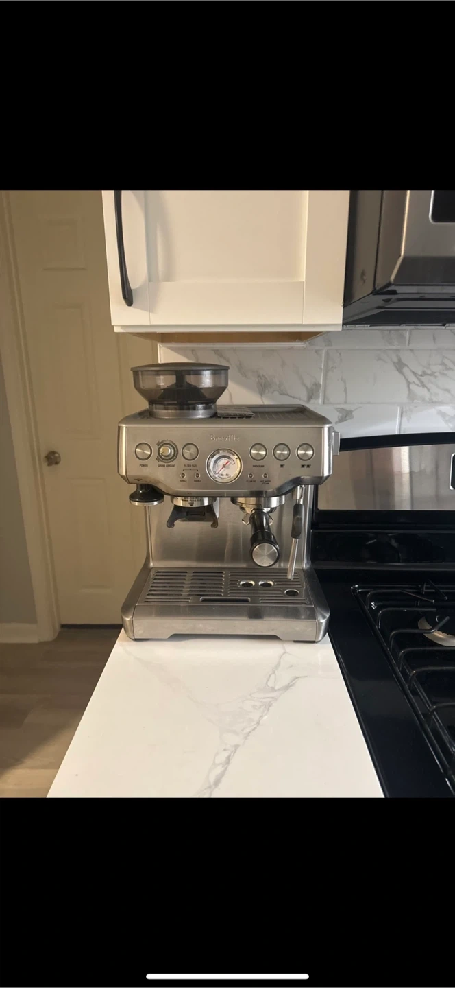 Selling a Breville Barista Express espresso machine. It's in great condition and ready to make delicious coffee at home! This machine is known for its quality and ease of use, perfect for both beginners and experienced baristas