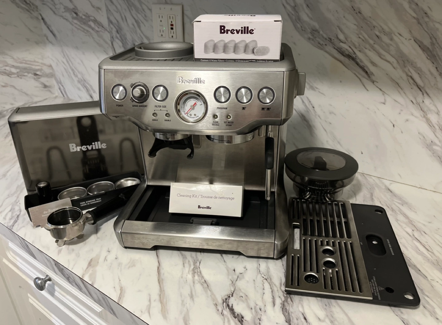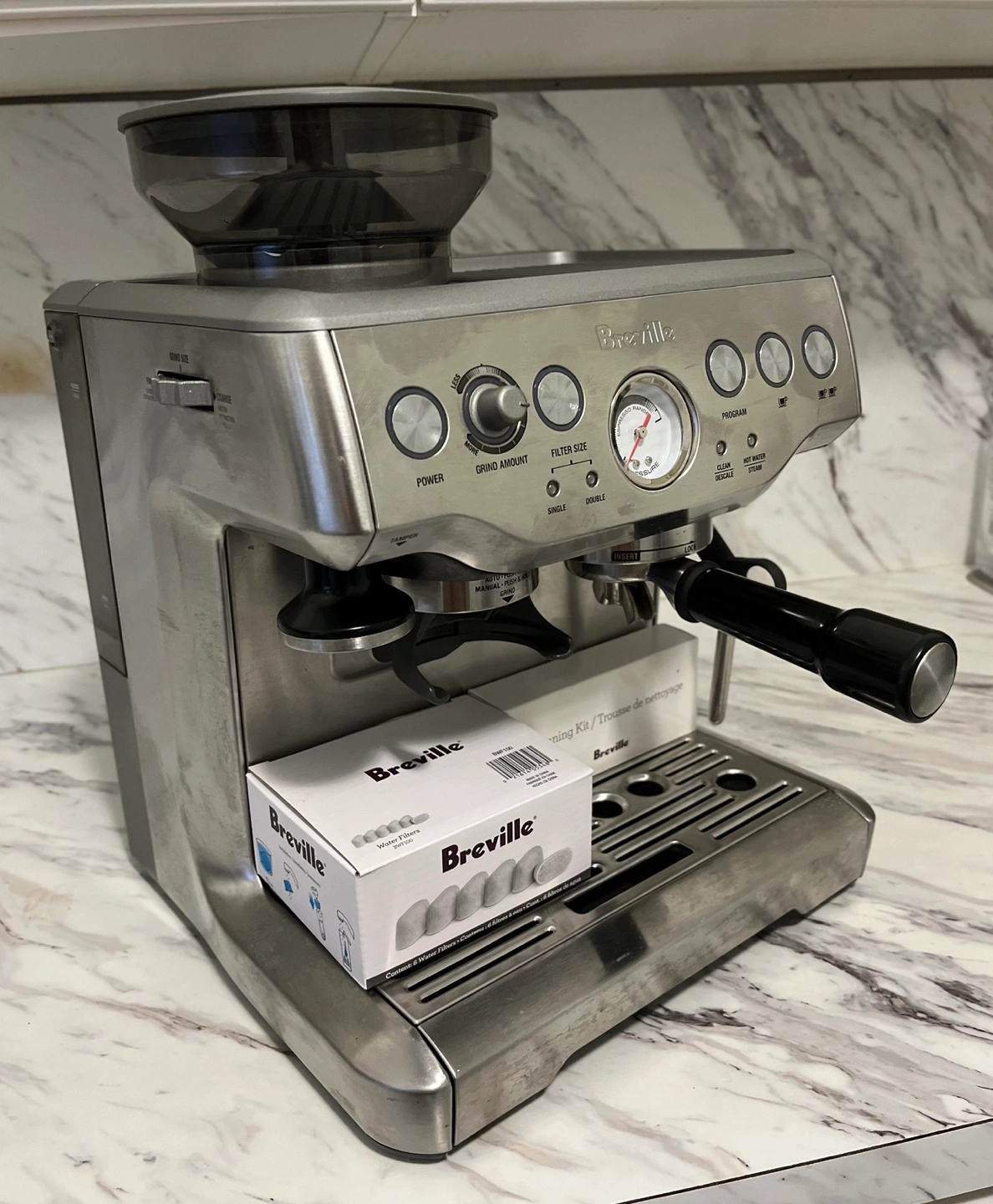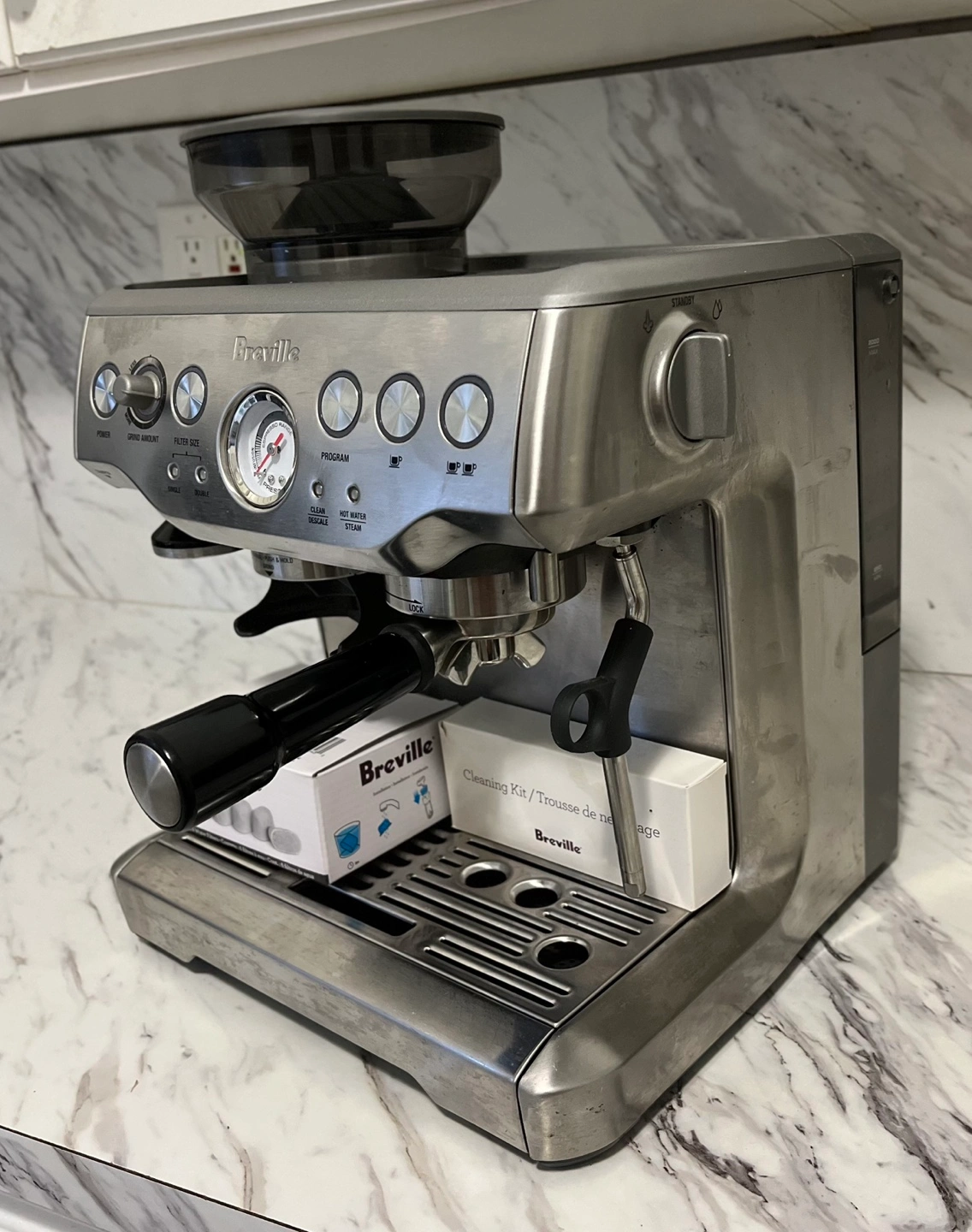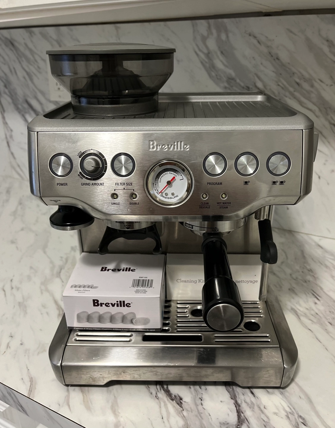 Breville Barista Express Espresso Machine in excellent condition. Fully functional and maintained. Included: • All original accessories (portafilter, tamper, milk pitcher, cleaning tools) • Replacement water filters included (x5) • All original parts and paperwork/manuals  Features: • Integrated conical burr grinder for fresh grounds • Precise espresso extraction with digital temperature control (PID) • Steam wand for microfoam milk texturing • Built-in pressure gauge for optimal espresso shots • Stainless steel construction for durability Pick Up & Delivery - NYC