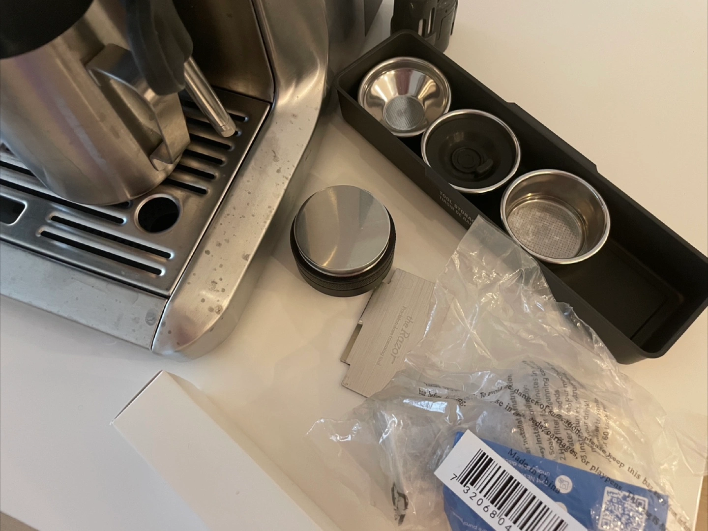 18Selling a Breville Barista Express espresso machine. It's in great condition and comes with all the accessories you see in the pictures, including the milk frothing pitcher, portafilter, and additional cleaning tools. Also included is the original instruction book. Perfect for making delicious espresso at home! Cash only (no $100 bills)