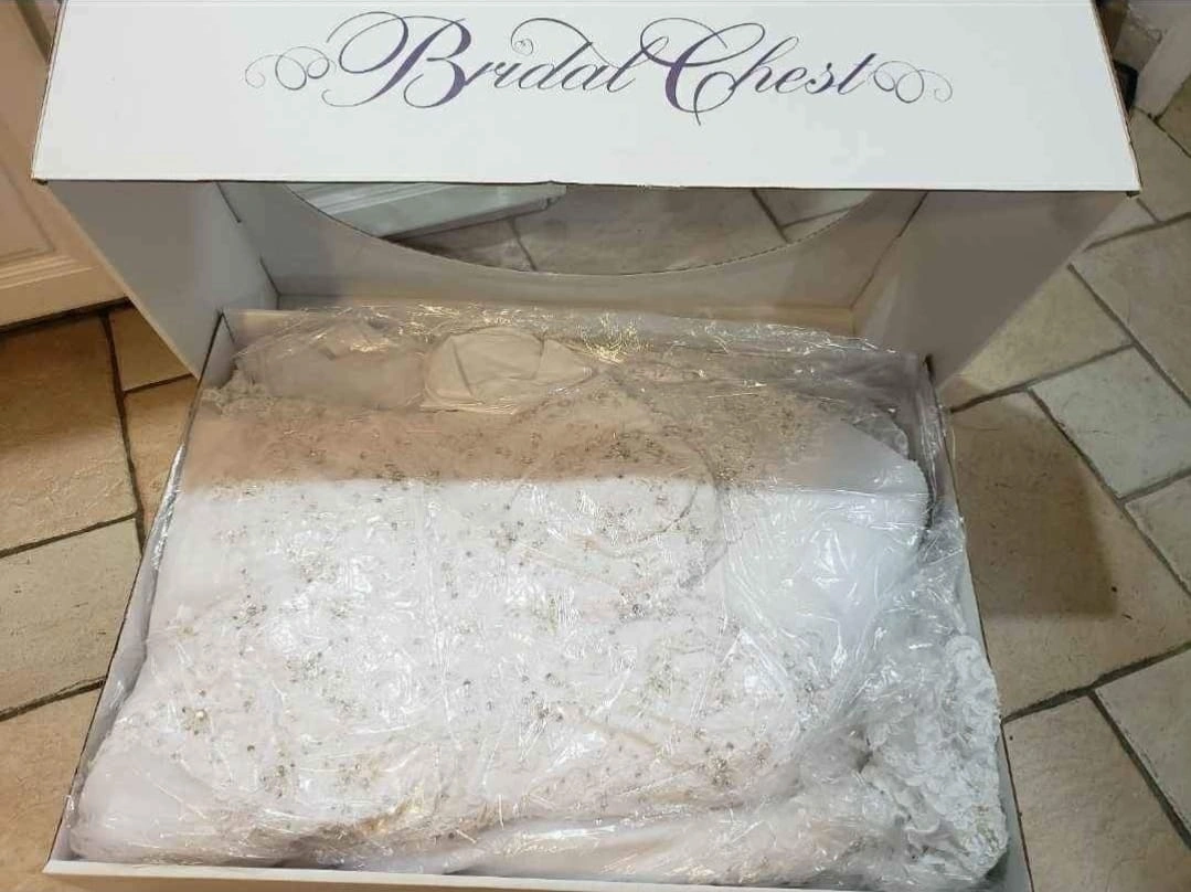 23Selling a beautiful Bridal Chest wedding dress. It has a lovely lace design and comes with its original box. Perfect for your special day!