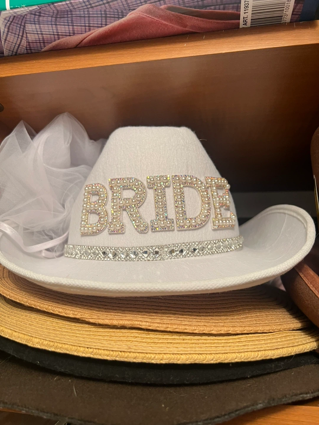 Selling a collection of wedding accessories, perfect for a bride-to-be! Most items are new or like new. Includes: - "Bride" earrings - White bow - White cap with "bride" embroidery (new in packaging) - White dress - White sneakers with embellishments - White cowboy hat with "BRIDE" lettering - Murrow - Boombas - Blankets to have and to hold - Votives - Others not pictured! Please msg for pricing.
