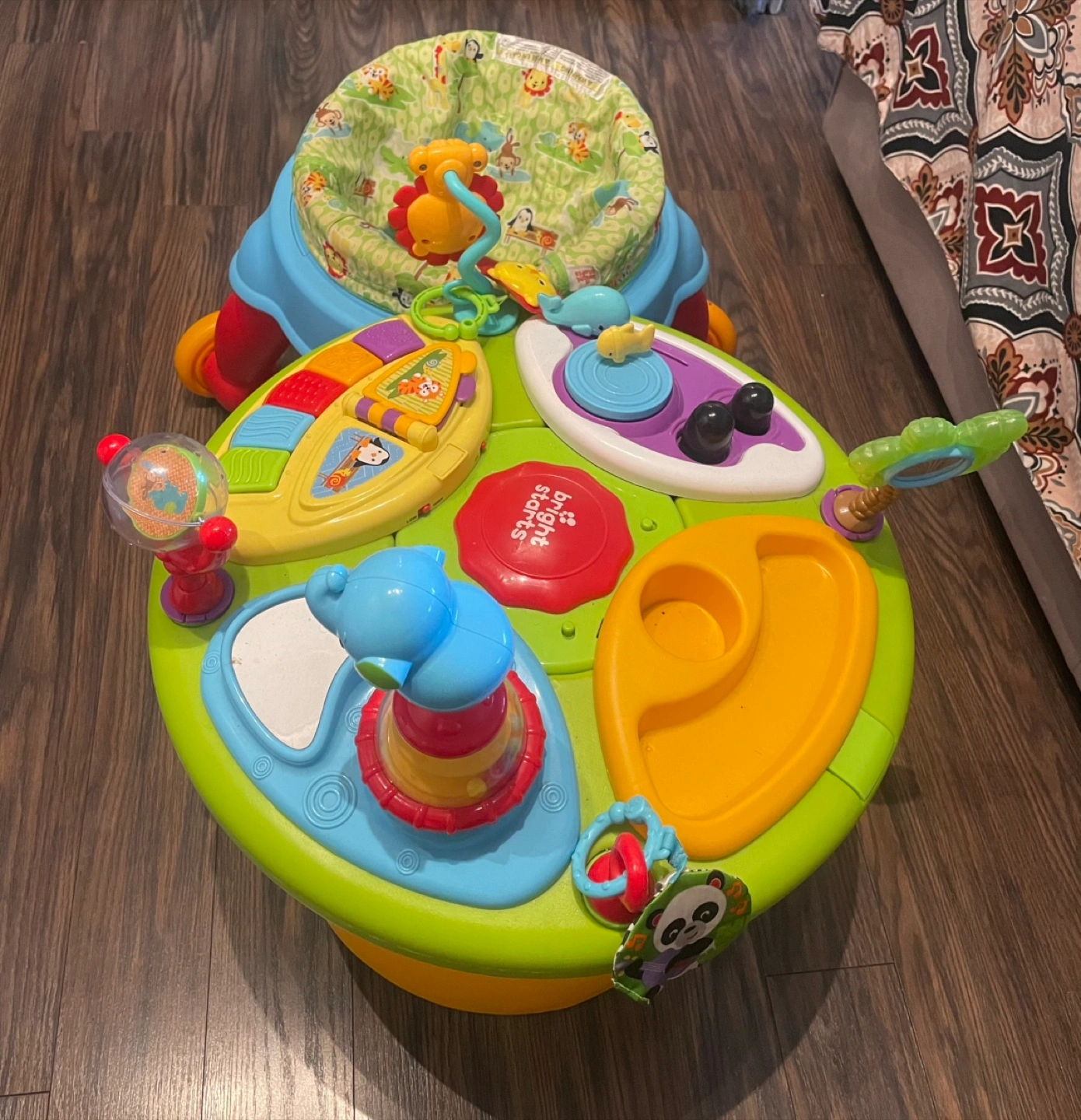 18Bright Starts Around We Go! Activity Center in great condition! The activity center features a variety of toys and activities to keep your baby entertained and help them develop important skills. It has a detachable go-around walker as well. It's a fun and engaging way for your little one to play and explore.