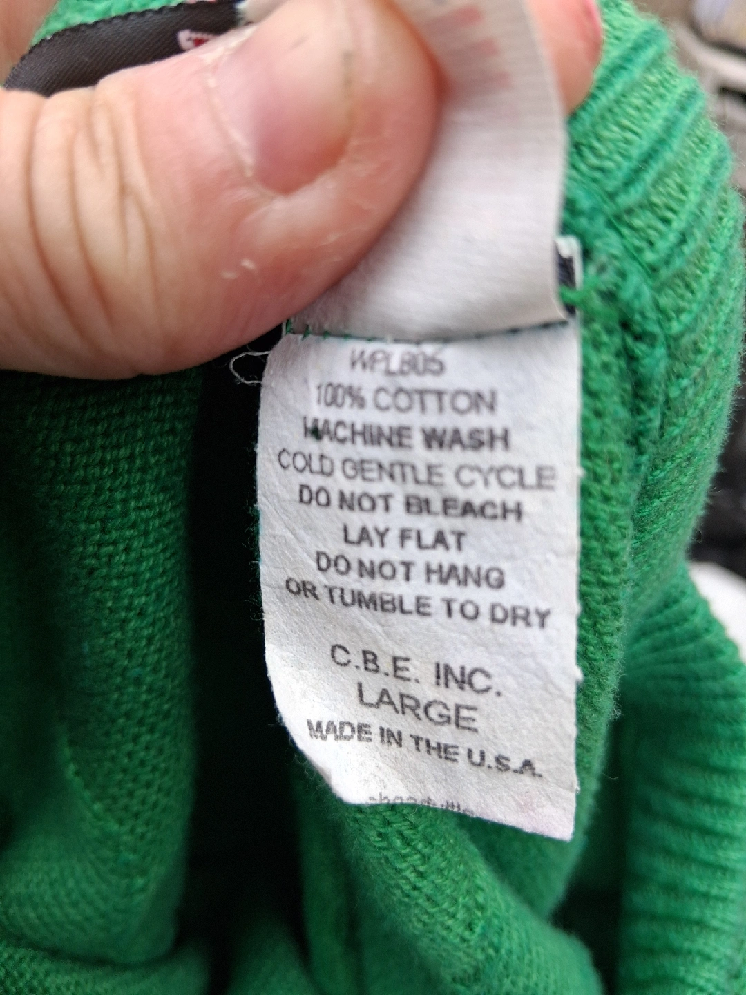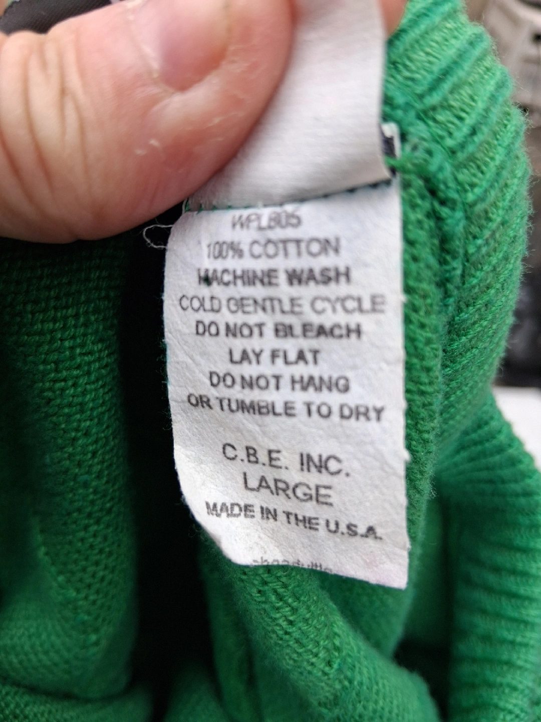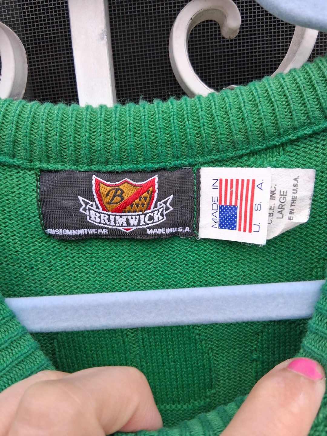 Selling a Brimwick green knit sweater in size large. The material is 100% cotton. It's in good condition and ready for a new home! Located in Fair Lawn NJ. Cash only!