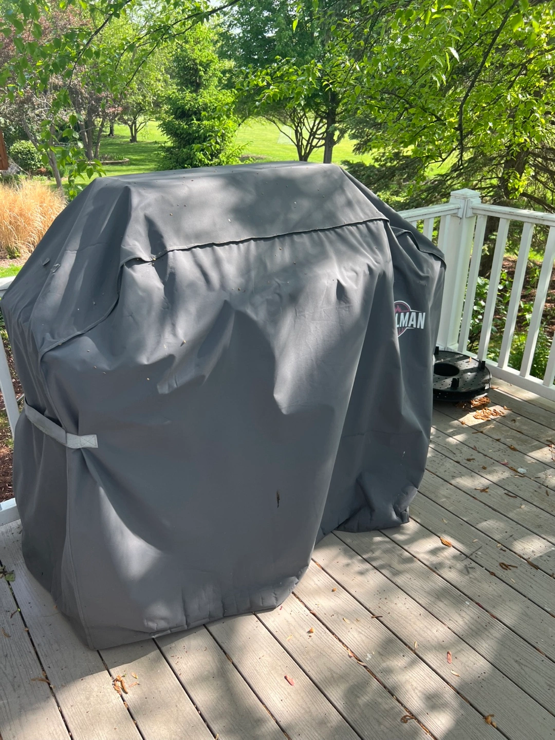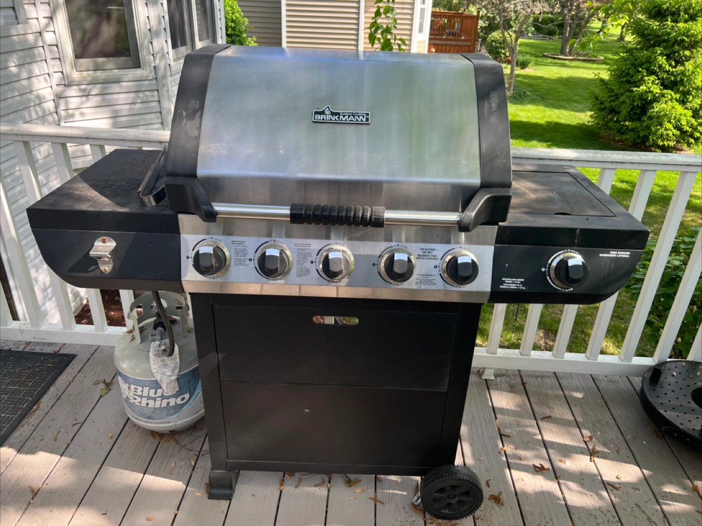 Selling a Brinkmann gas grill. It has four burners and is in good condition. Includes a cover to protect it from the elements