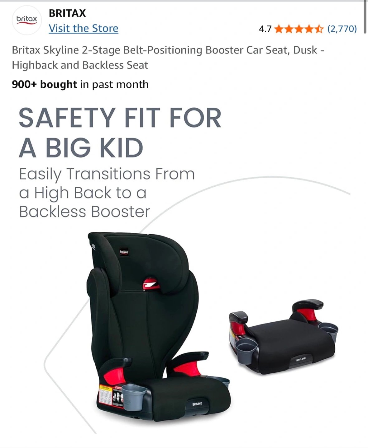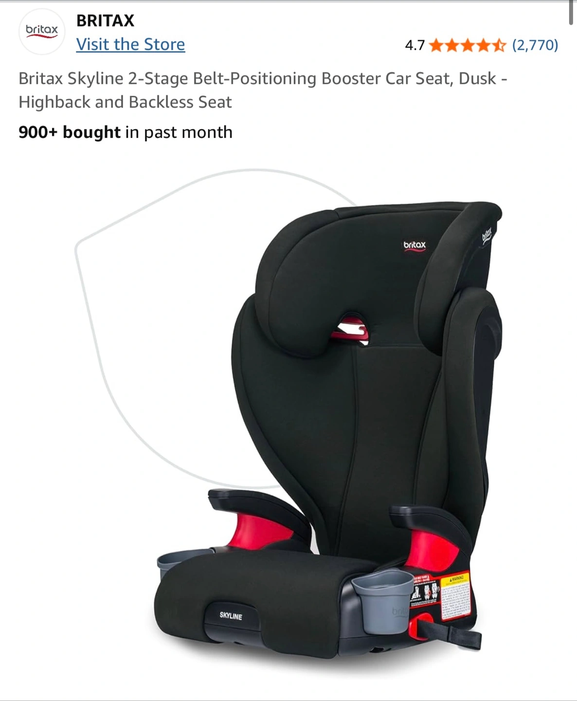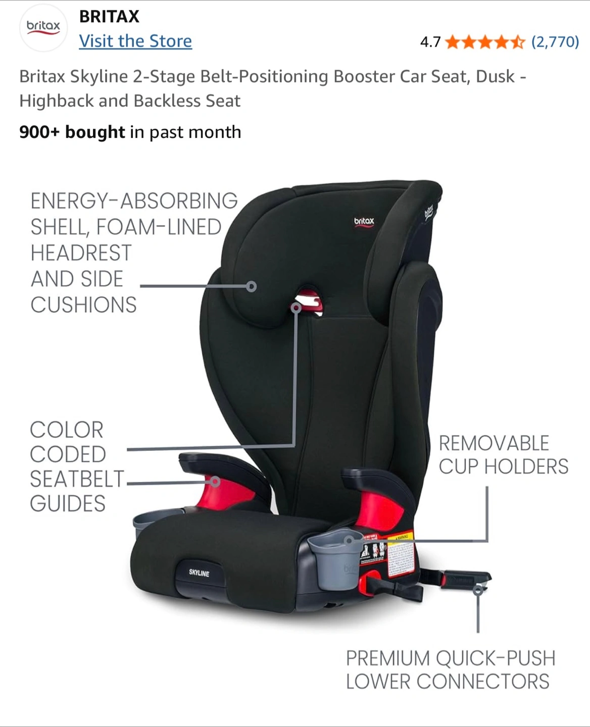 Britax Skyline 2-Stage Belt-Positioning Booster Car Seat, Dusk - Highback and Backless Seat Features an energy-absorbing shell. Includes a foam-lined headrest. Comes with removable cup holders. This car seat is a great way to provide your child with comfort and safety on the road.